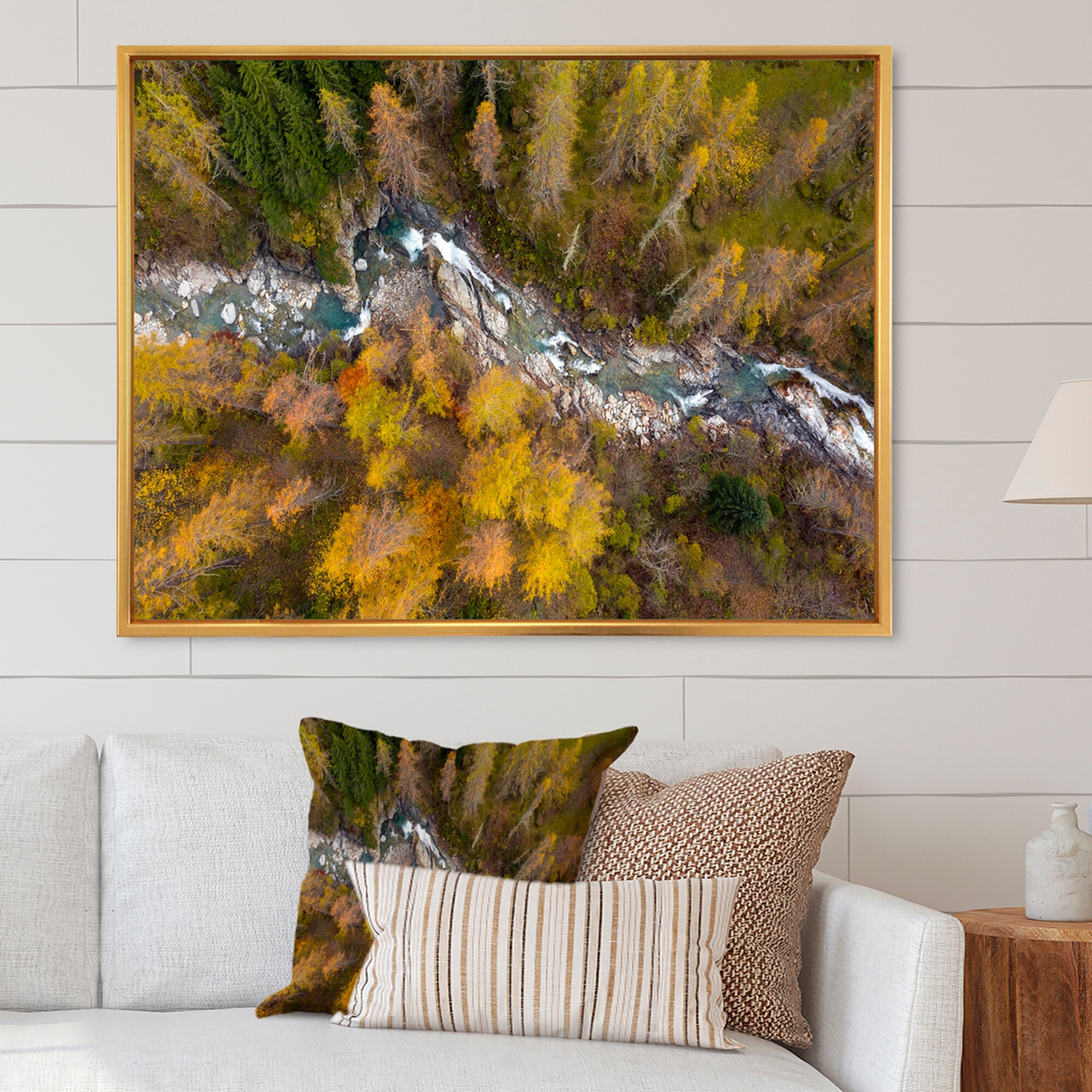 Designart "Aerial View Mountains River Autumn" Traditional Framed Canvas Art Print