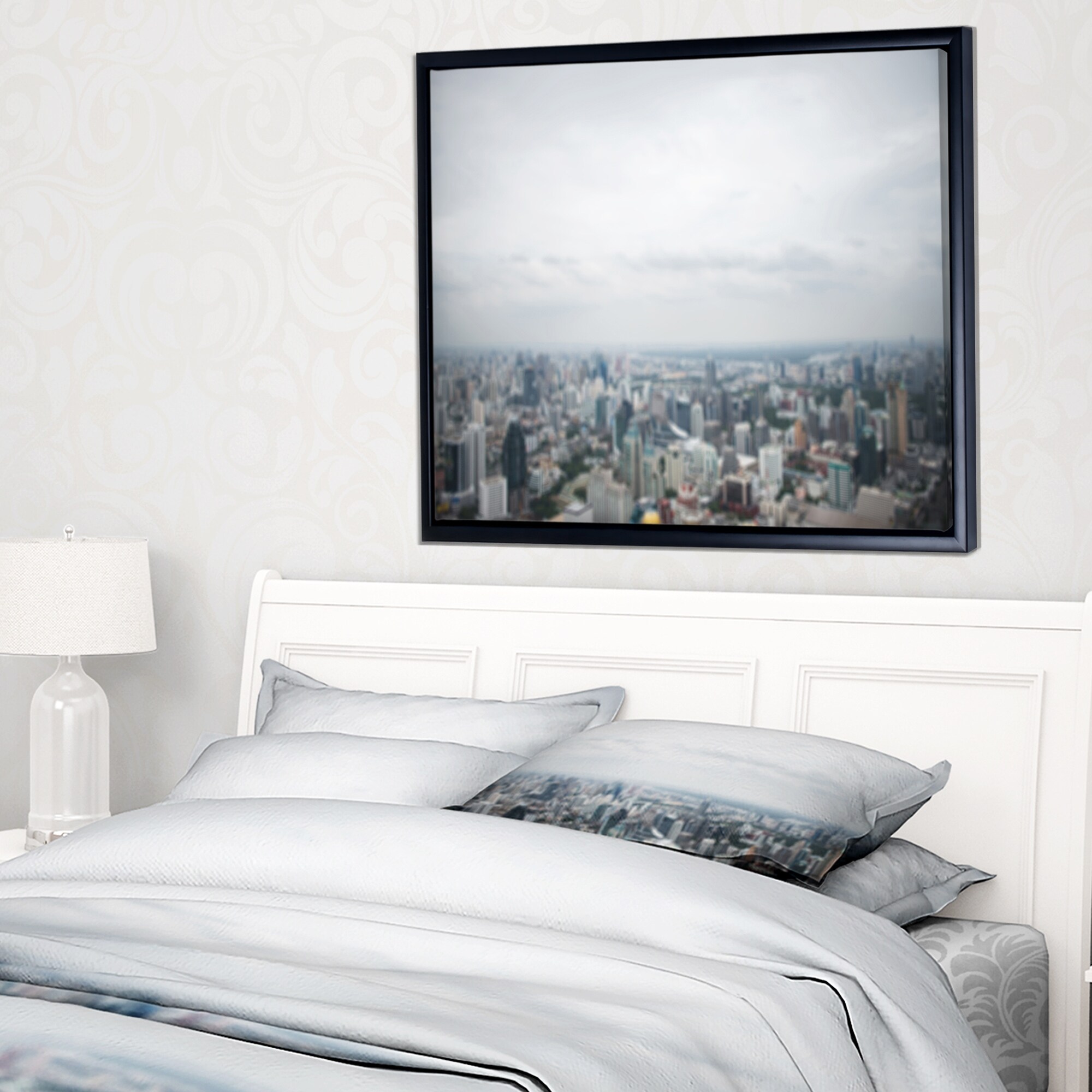 Designart "Panoramic Aerial View of Big City" Landscape Framed Canvas Art Print