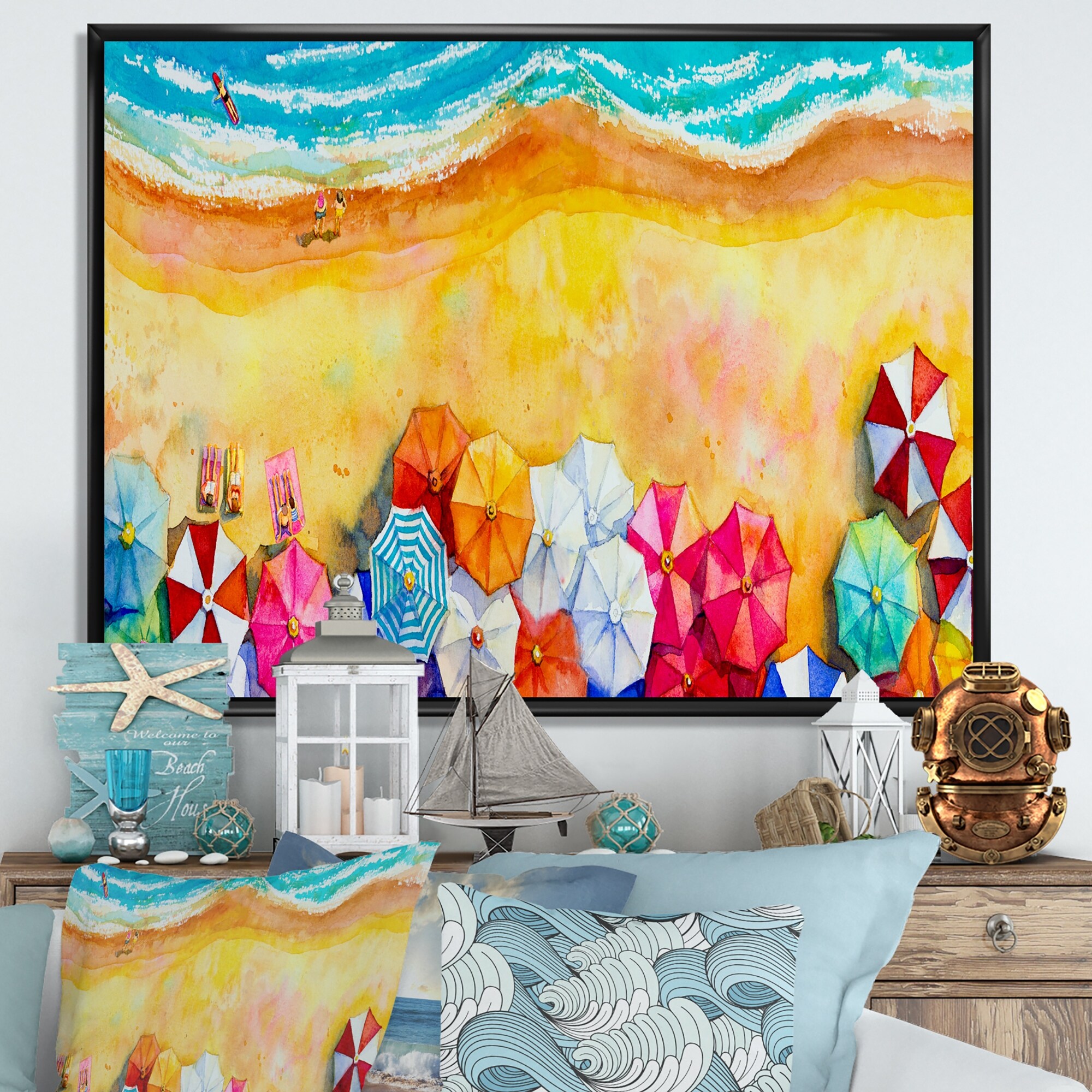 Designart "Aerial View of Tropical Beach II" Nautical & Coastal Framed Canvas Wall Art Print