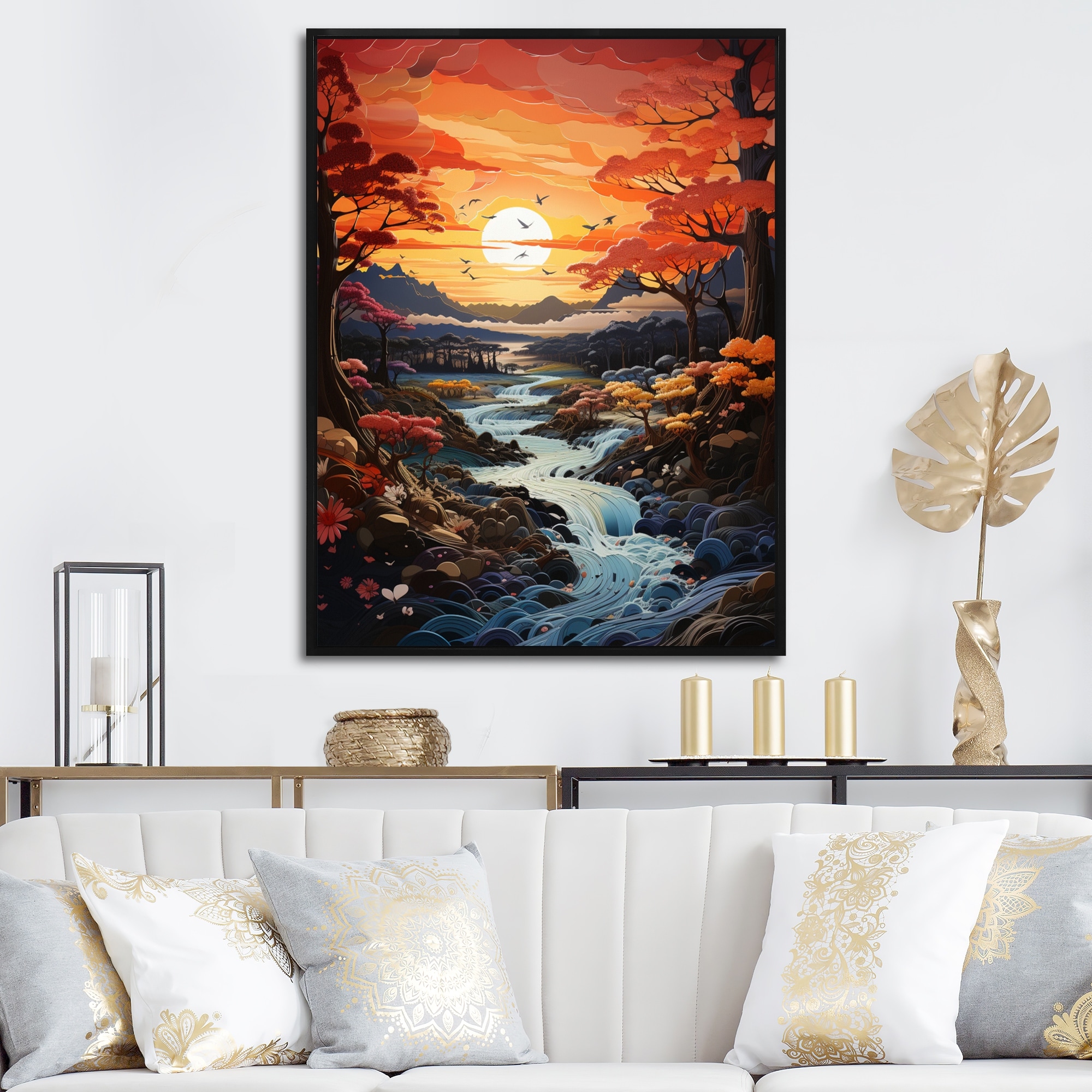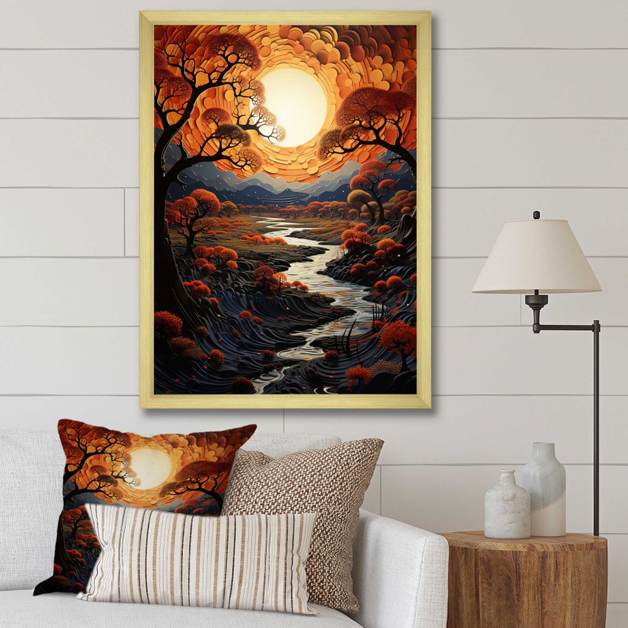 Designart "African Pointillism Landscape At Sunset II" Animation Framed Wall Art Prints