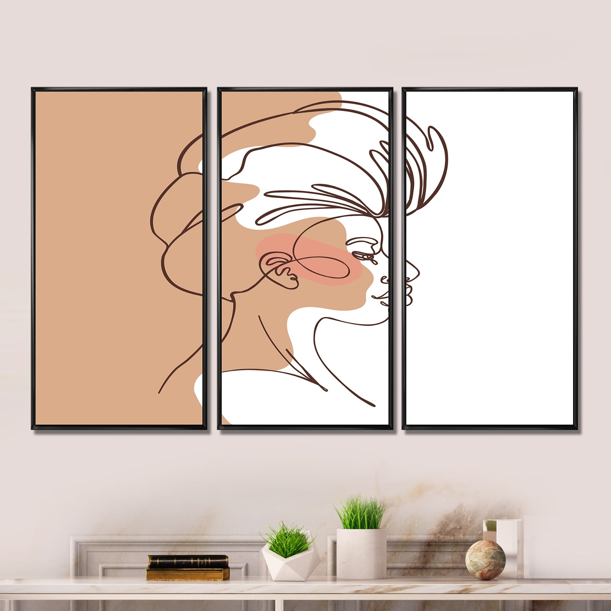 Designart "One Line Portrait of African American Woman II" Modern Framed Artwork Set of 3 - 4 Colors of Frames