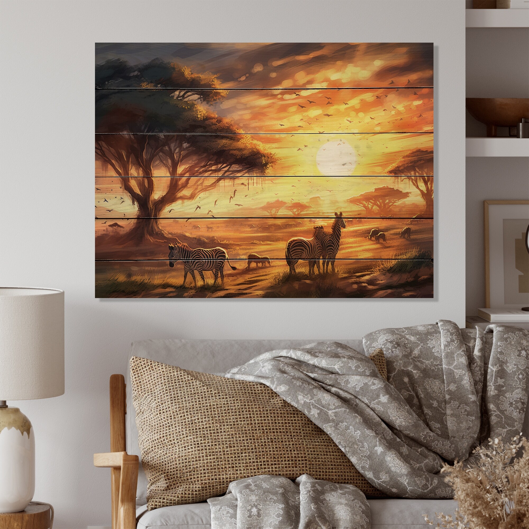 Designart "Orange African Zebra Safari II" Animals Elephant Print on Natural Pine Wood