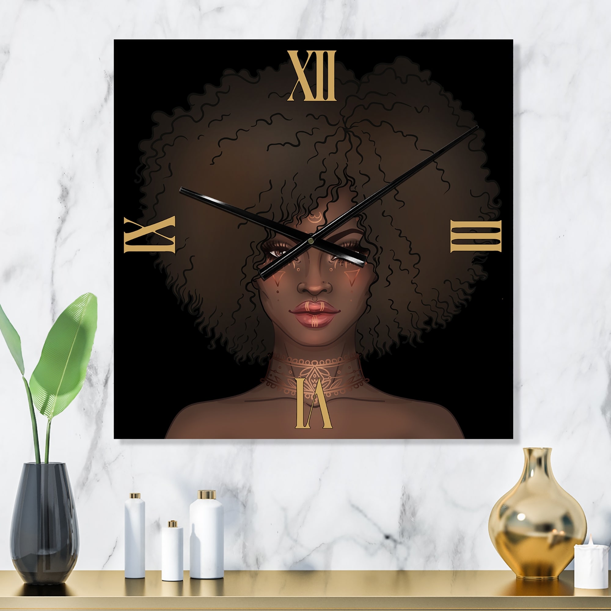 Designart 'Portrait of African American Woman III' Modern Wall Clock Decor