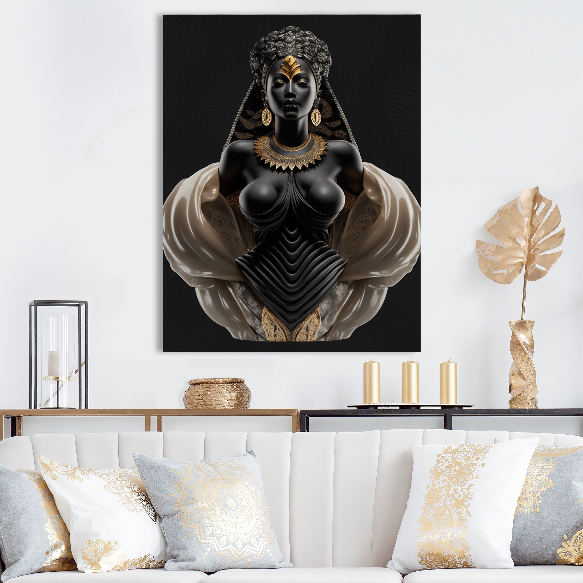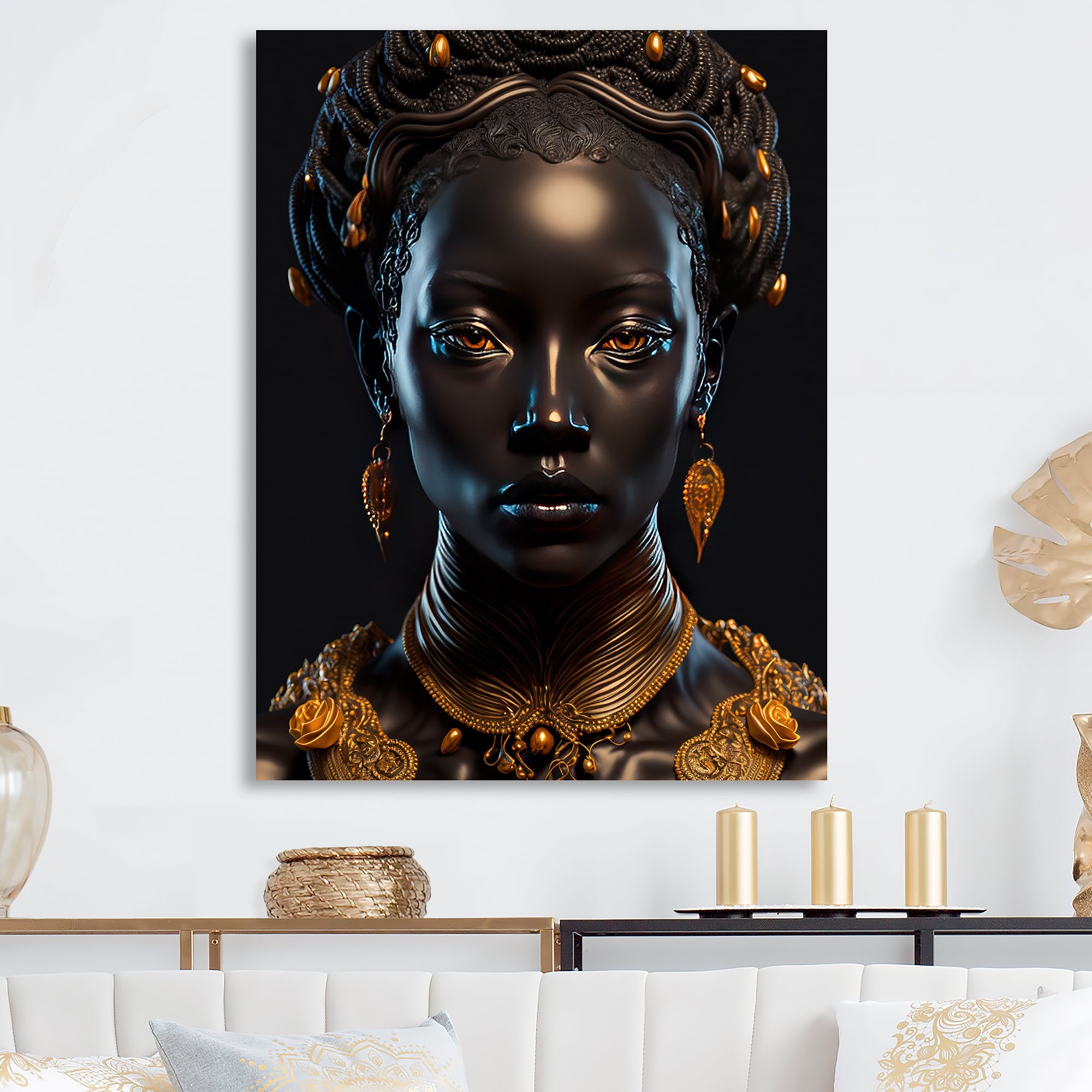 Designart "Porcelain Buste of Black And Gold African Goddess II" African American Woman Canvas Wall Art