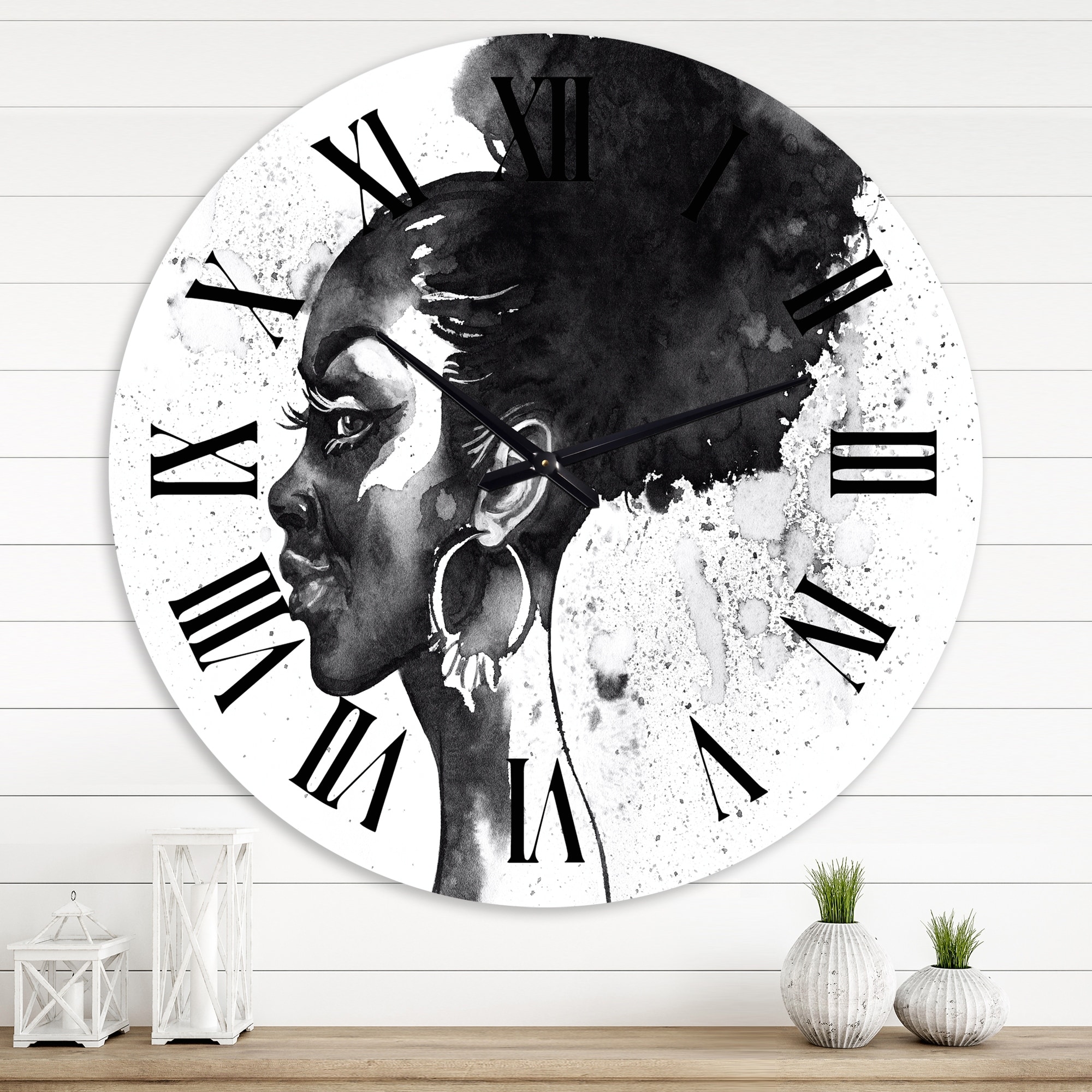 Designart 'Monochrome Portrait of African American Woman I' Modern wall clock