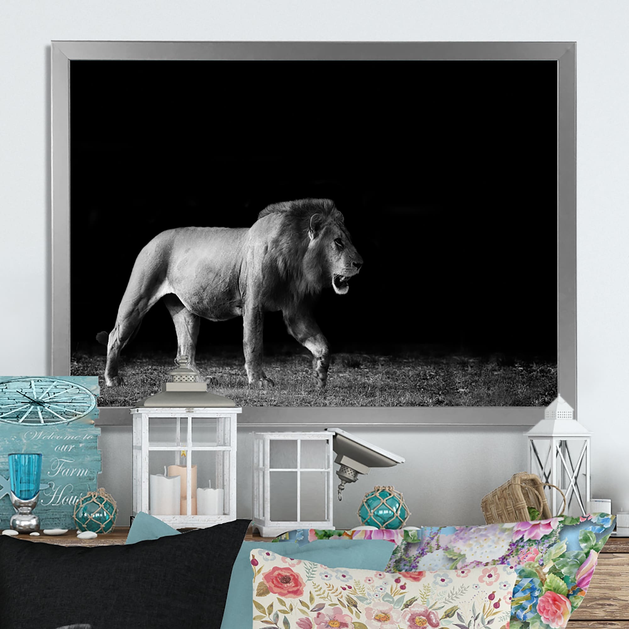 Designart "African Lion in Black And White" Traditional Framed Wall Decor