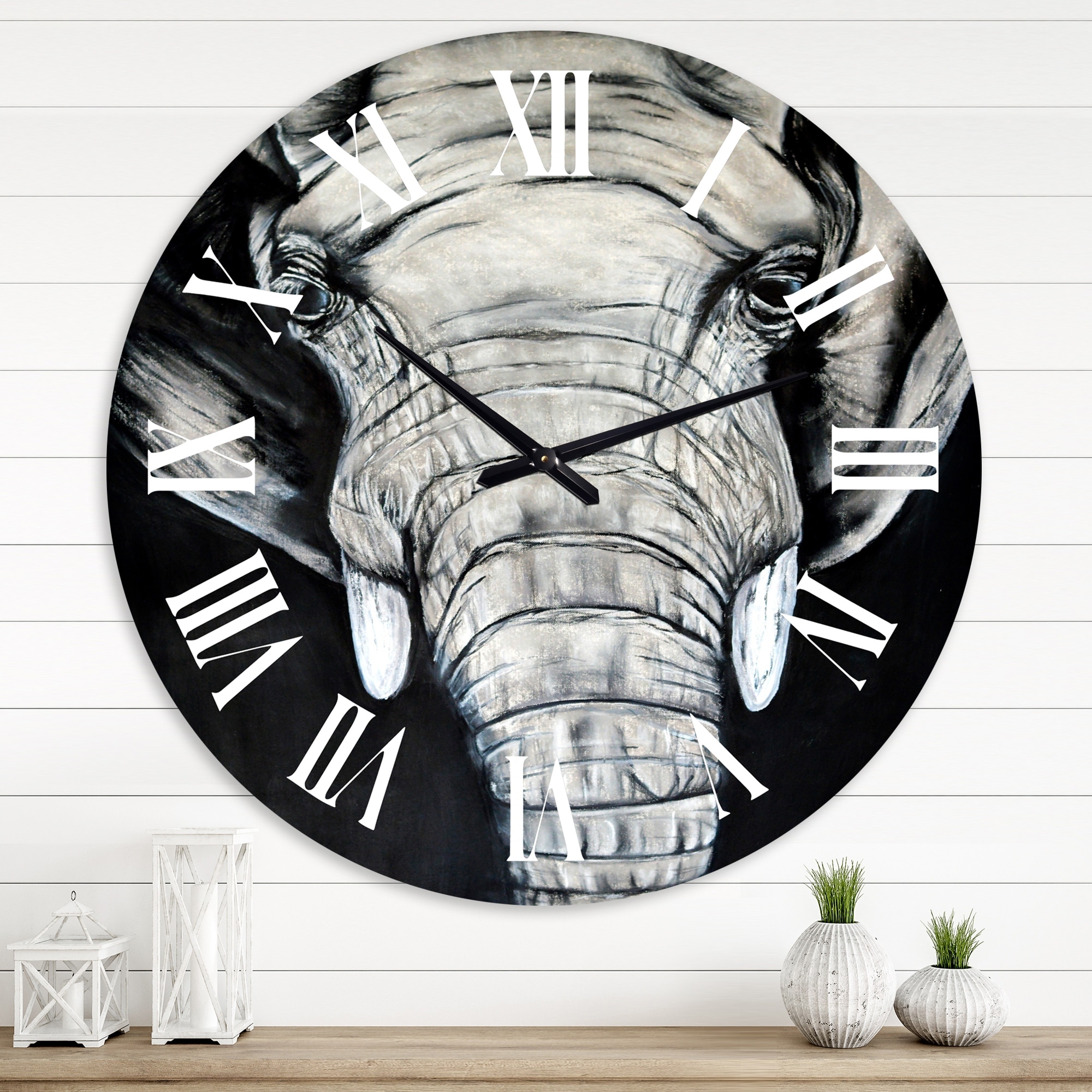 Designart 'The Portrait of an African Elephant' Farmhouse wall clock