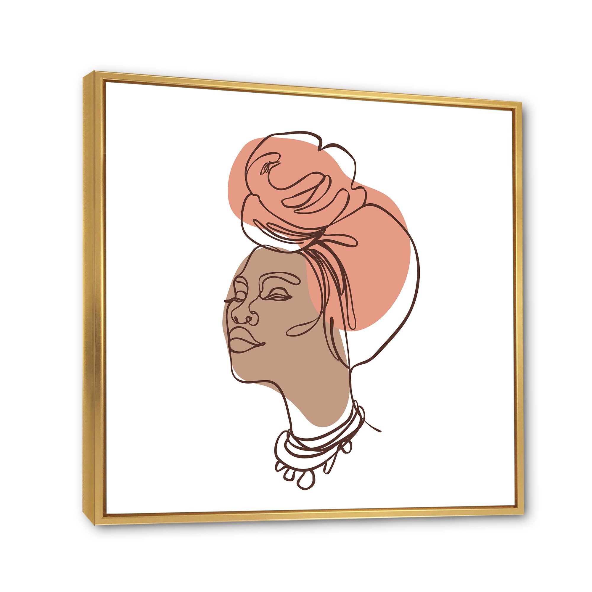Designart "One Line Portrait of African American Woman IV" Modern Framed Canvas Wall Art Print