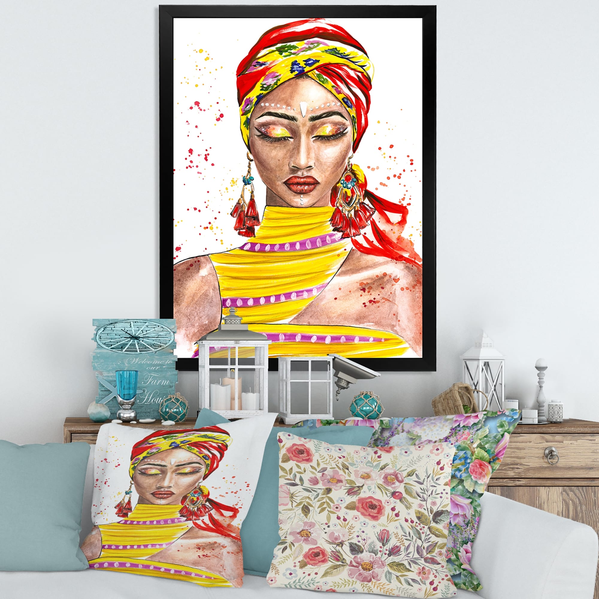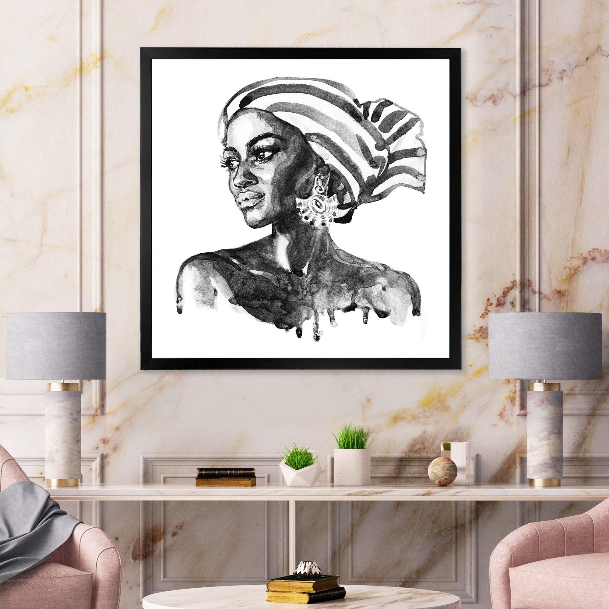 Designart "African American Woman With Earring & Turban" Modern Framed Art Print