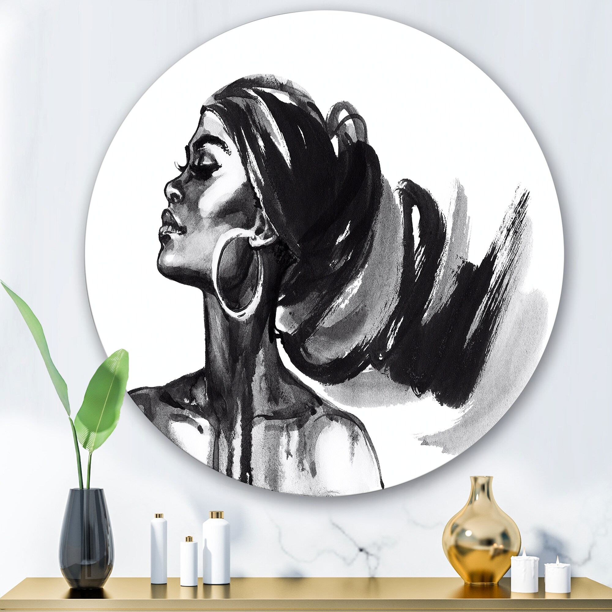 Designart 'Monochrome Portrait of African American Woman IV' Modern Metal Circle Wall Art