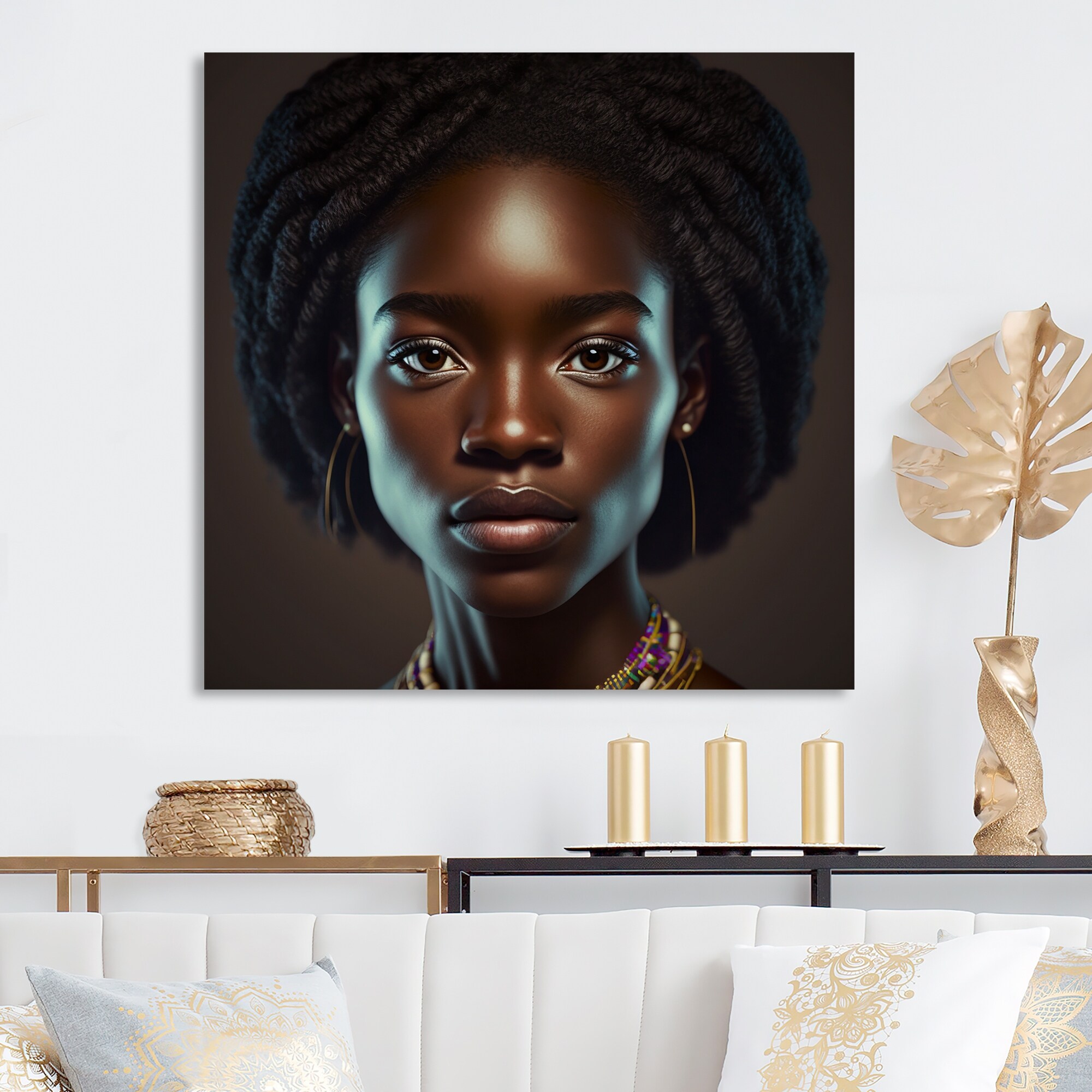 Designart "Portrait Of Glamorous African Lady X" African American Woman Canvas Wall Art