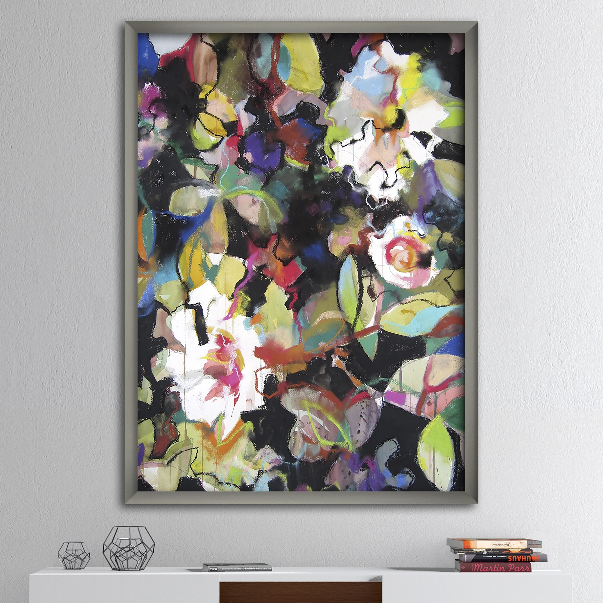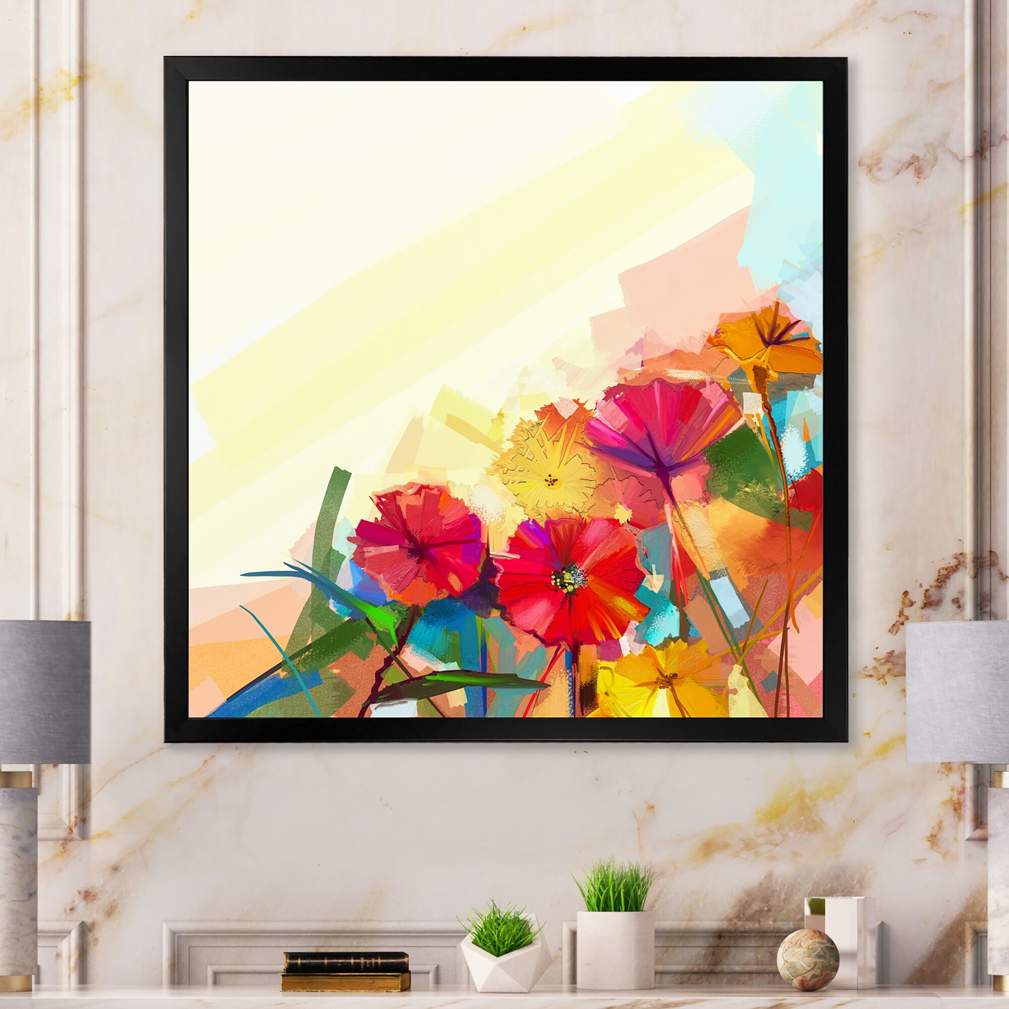 Designart "Colorfull Abstract Spring Flowers" Modern Framed Wall Art