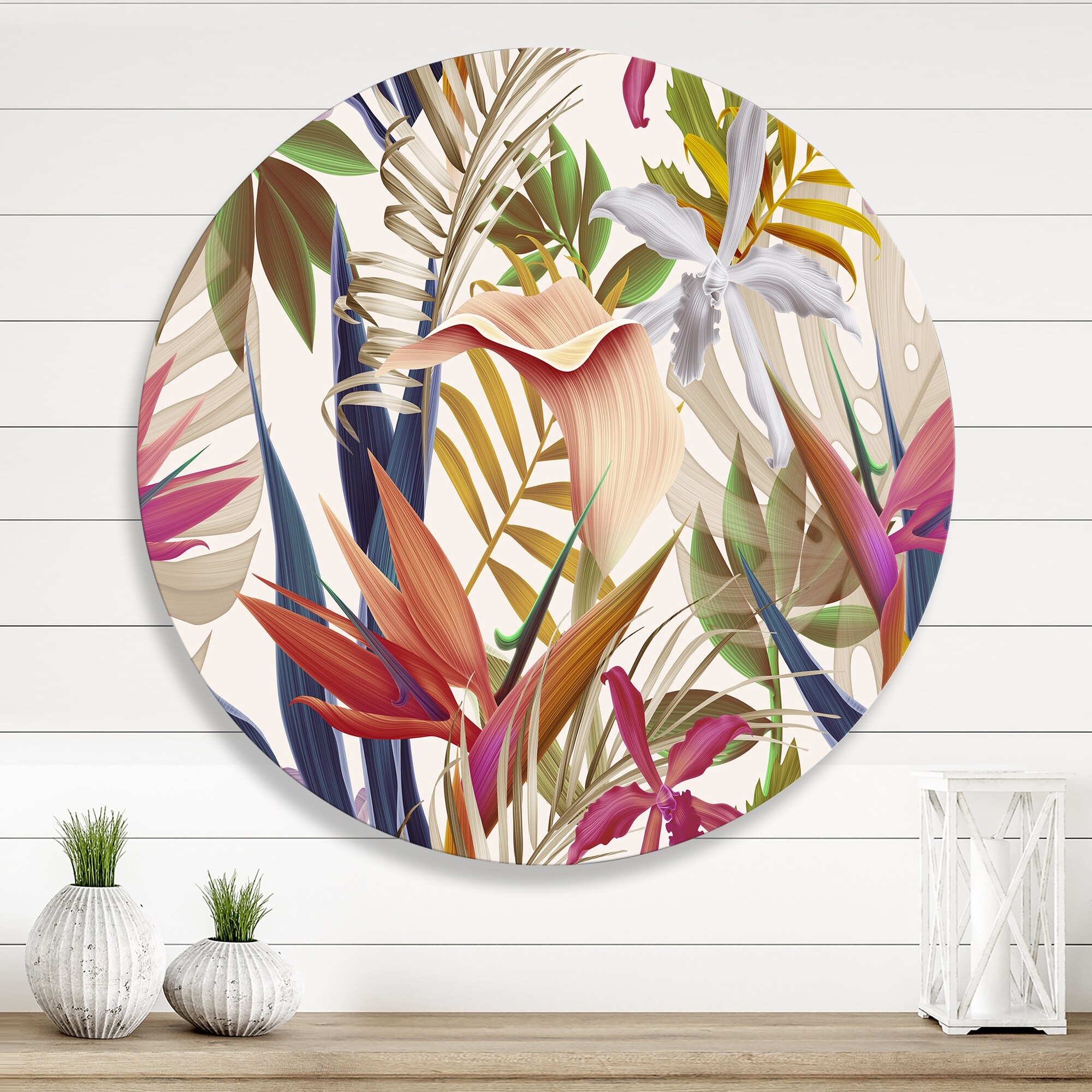 Designart 'Tropical VIntage Flowers III' Tropical Metal Circle Wall Art