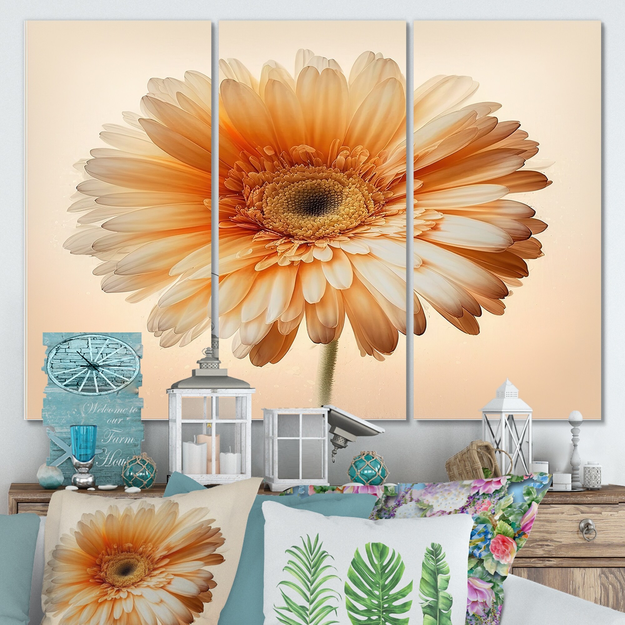 Designart "Orange Gerbera Flower V" Floral Daisy Canvas Art Print - 3 Panels