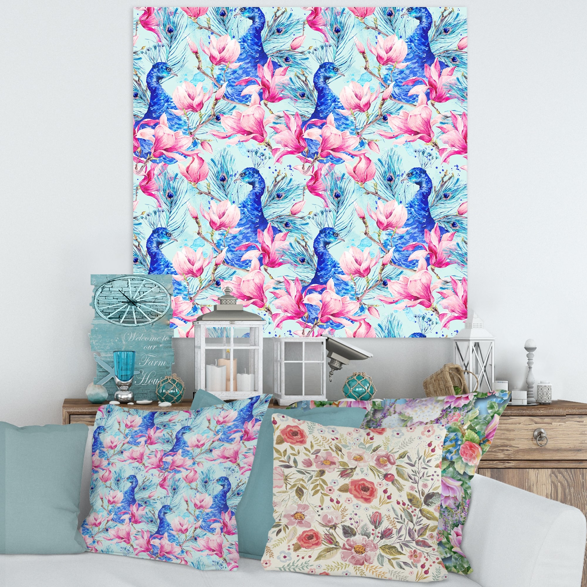 Designart "Peacoks WIth Magnolia Flowers" Traditional Canvas Wall Art Print