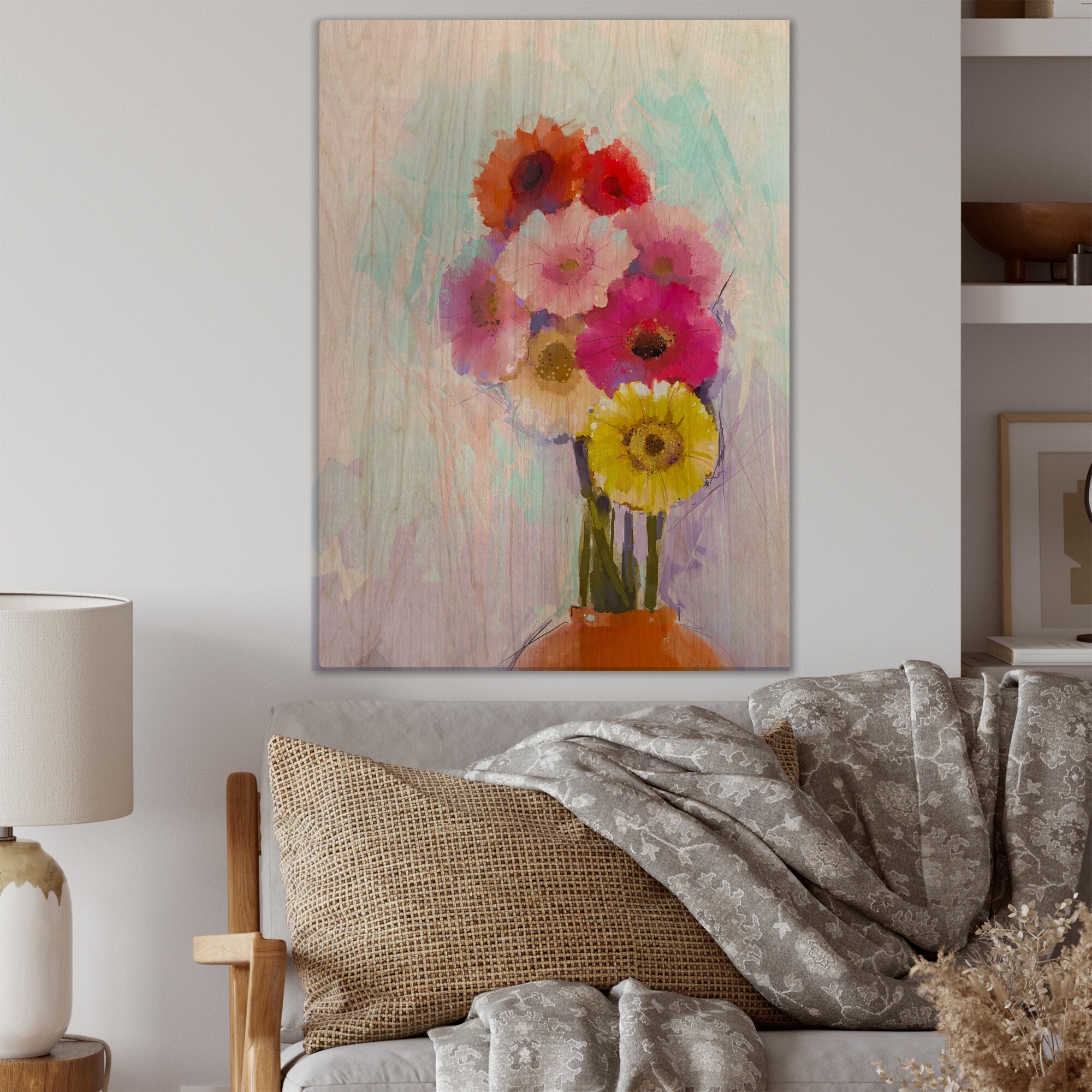Designart 'Paintbrush Gerbera Flower Impression' Traditional Wood Wall Art Panels - Natural Pine Wood