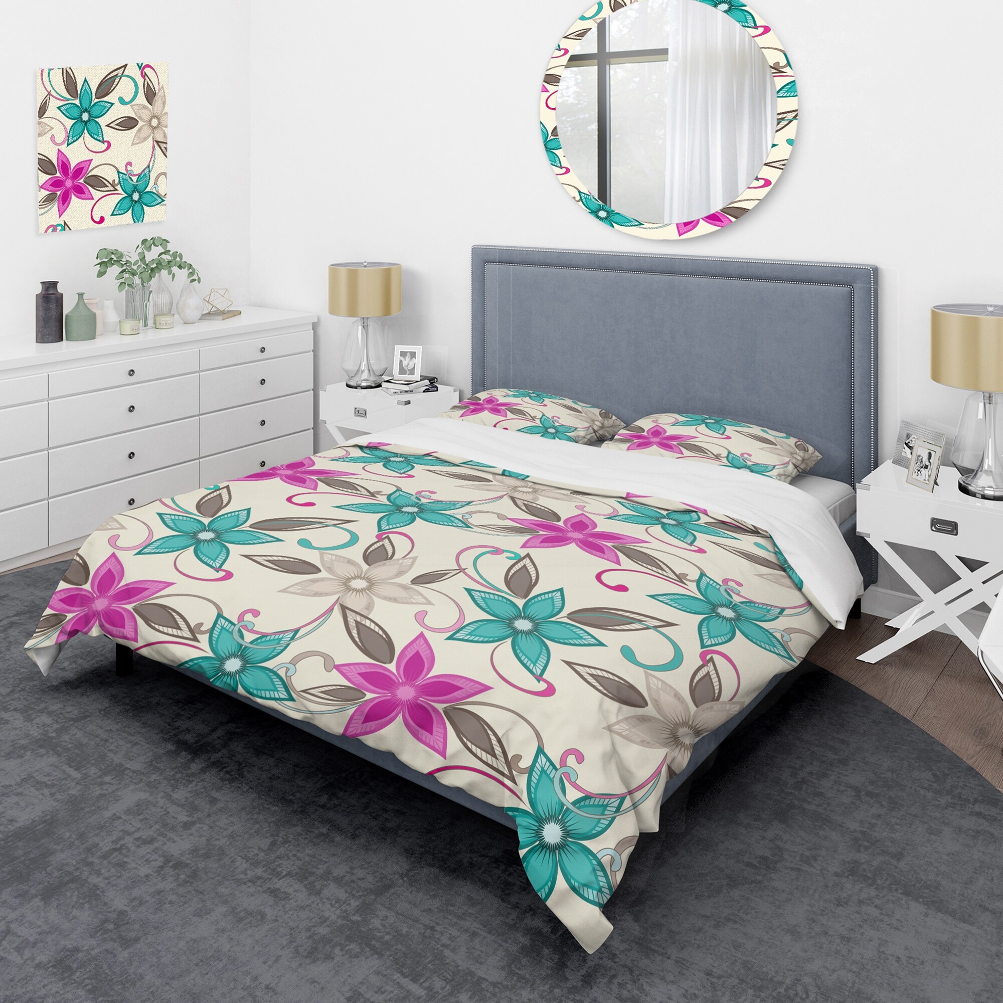 Designart 'Cream Colorful Flowers and Leaf' Cabin & Lodge Duvet Cover Set
