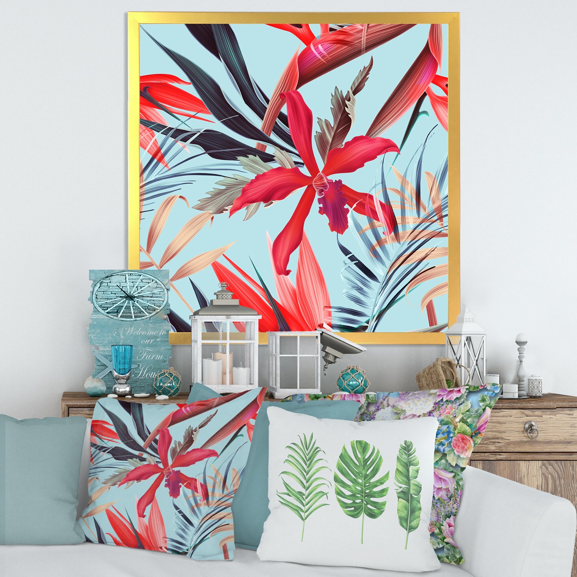 Designart "Tropical VIntage Flowers V" Traditional Framed Art Print