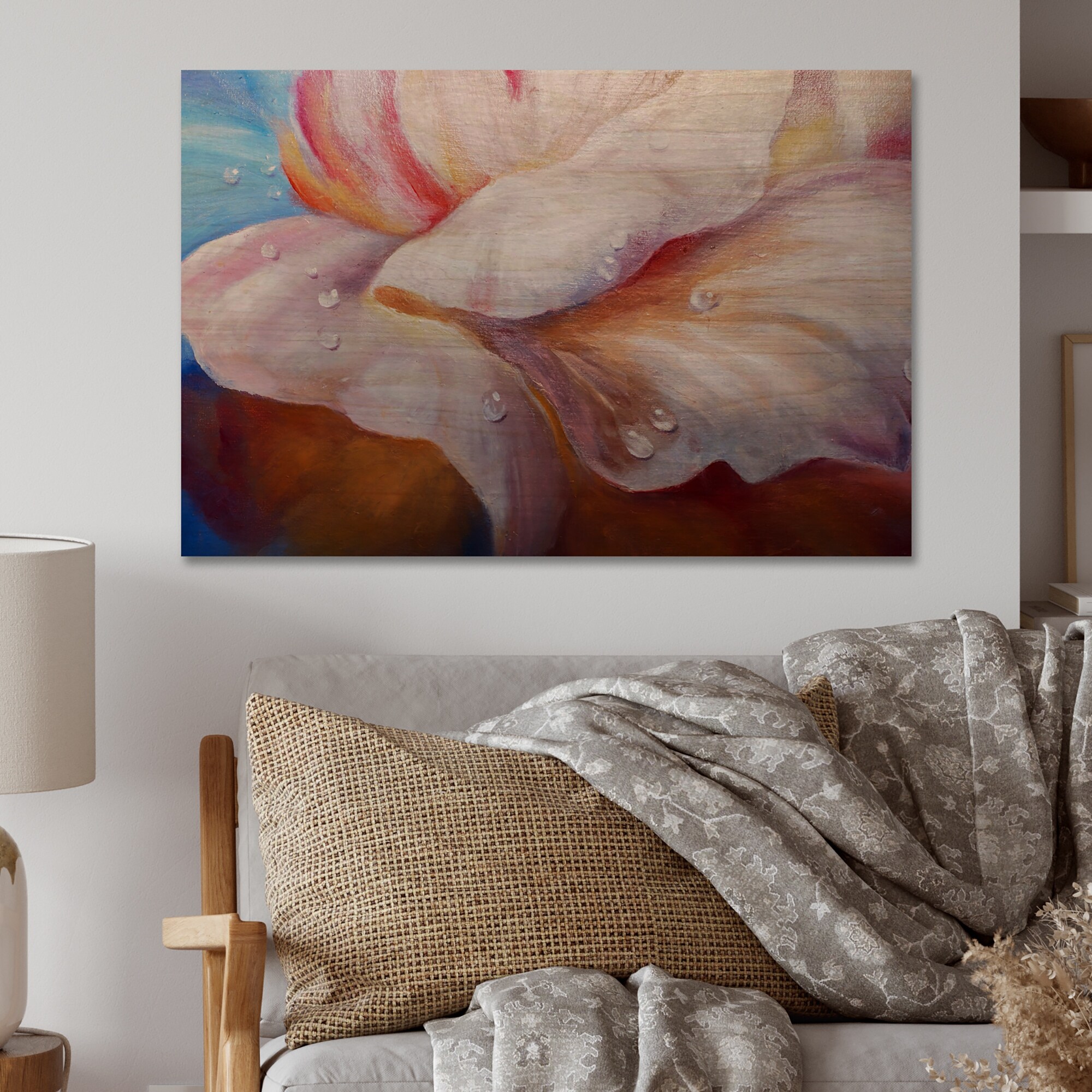 Designart 'Creative Waterdrop on Beige Flowers V' Traditional Wood Wall Art Panels - Natural Pine Wood