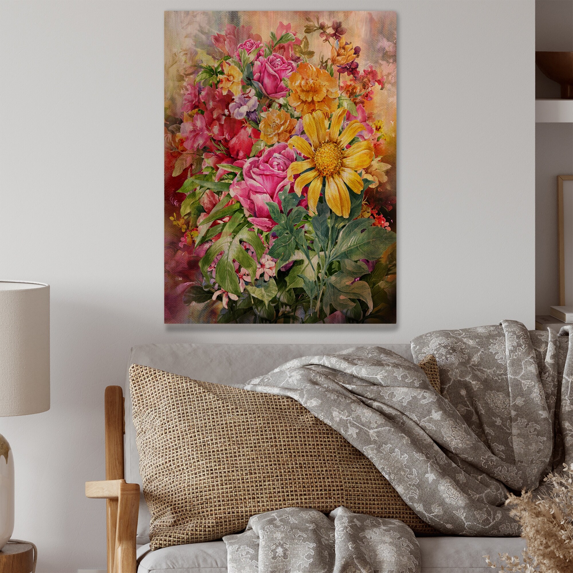 Designart "Vintage Spring Pastel Flowers" Traditional Framed Art Print
