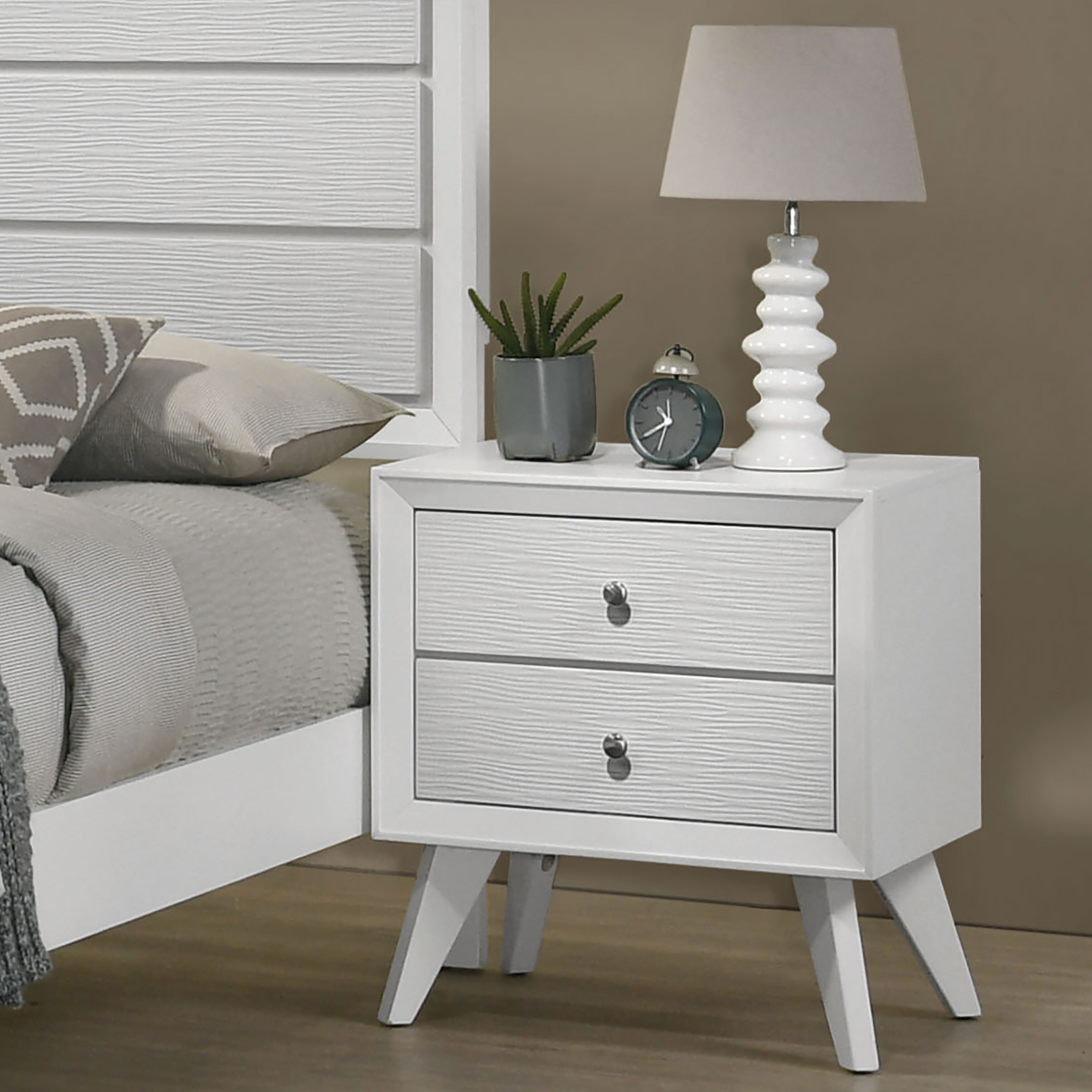 Kawi Contemporary White Wood 2-Drawer Nightstand by Furniture of America