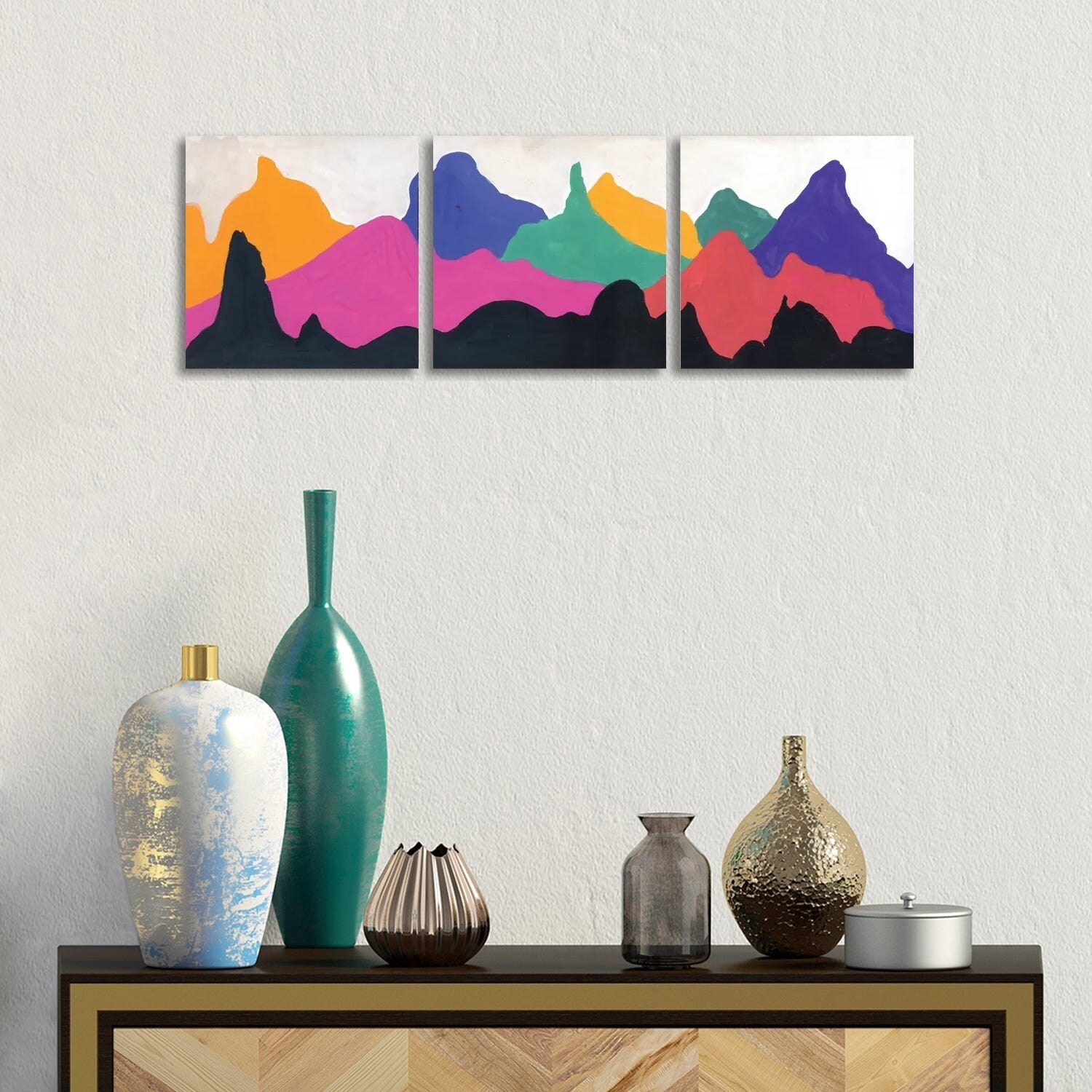 iCanvas "Colorful Mountains: Orange, Pink, Blue, Green" by Andrea Kosar 3-Piece Canvas Wall Art Set