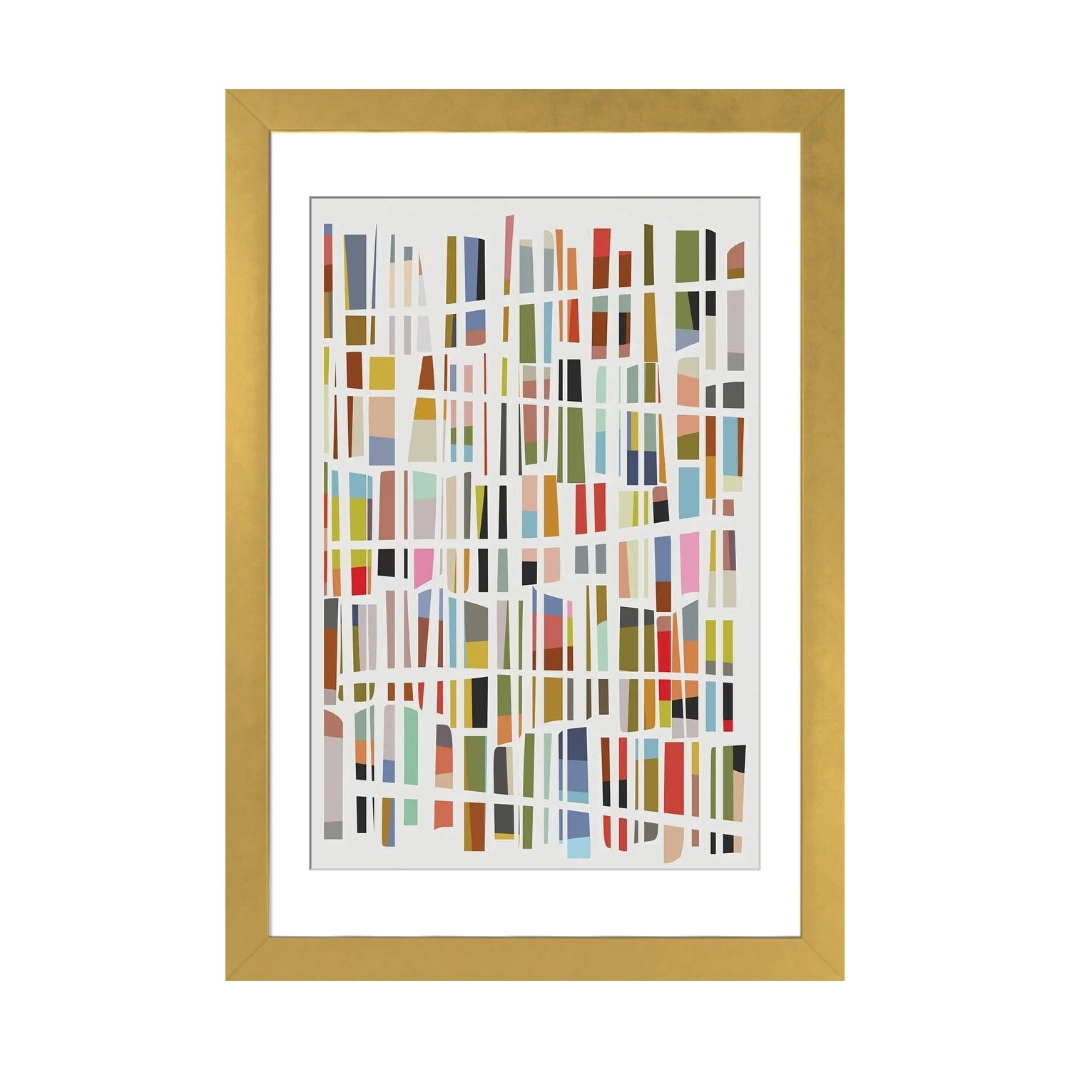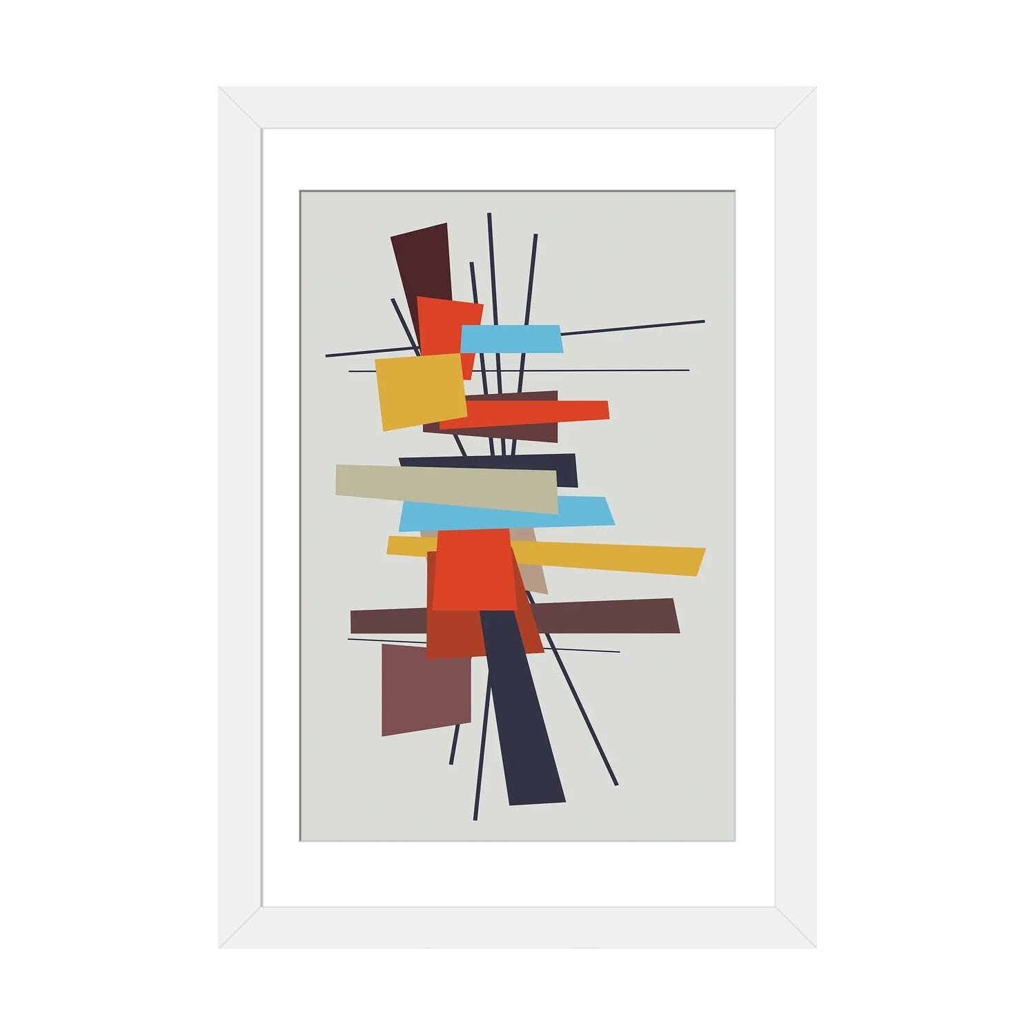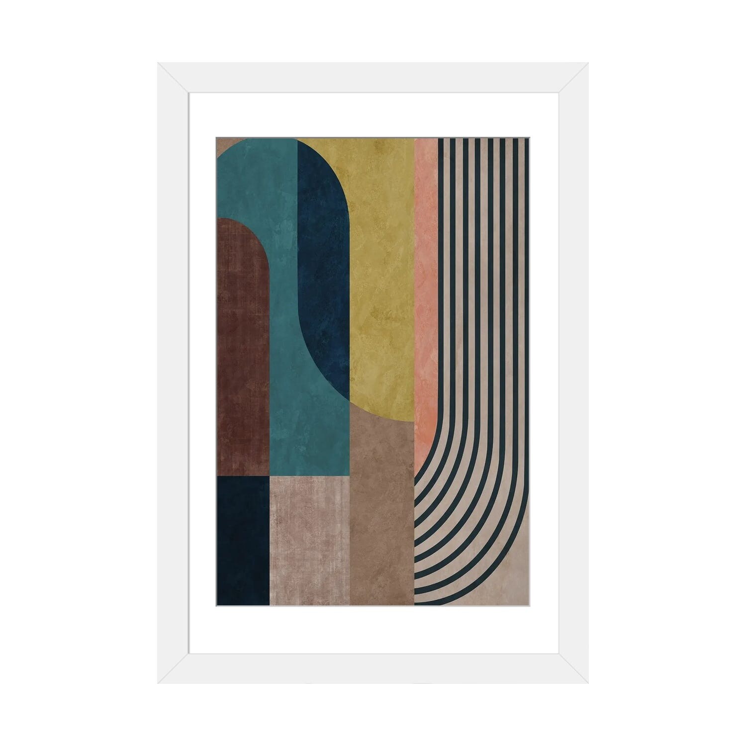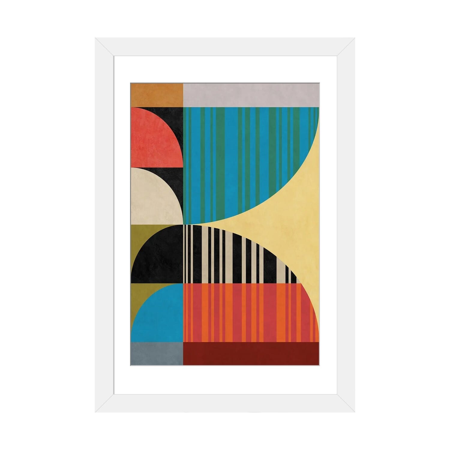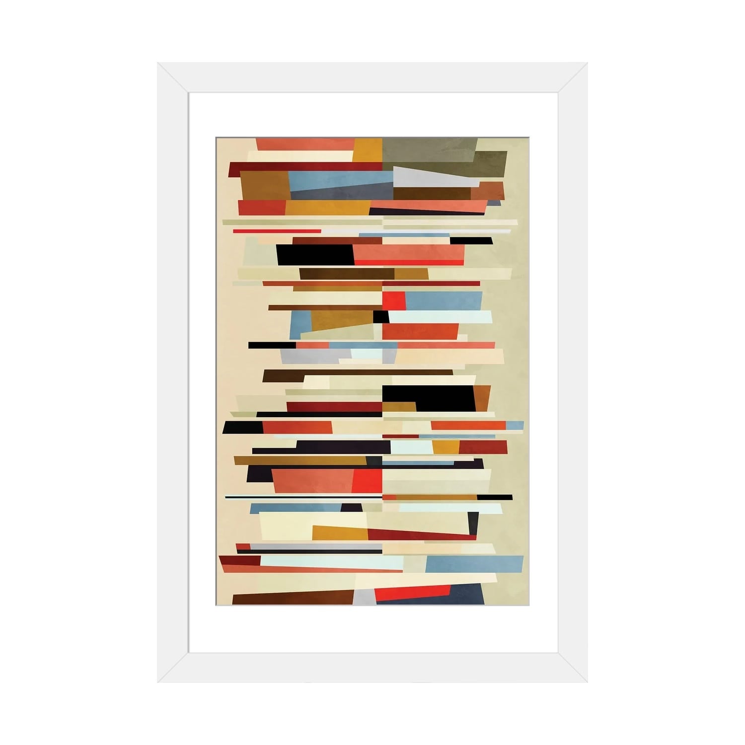iCanvas "Geometric Stripes II" by Angel Estevez Framed|White