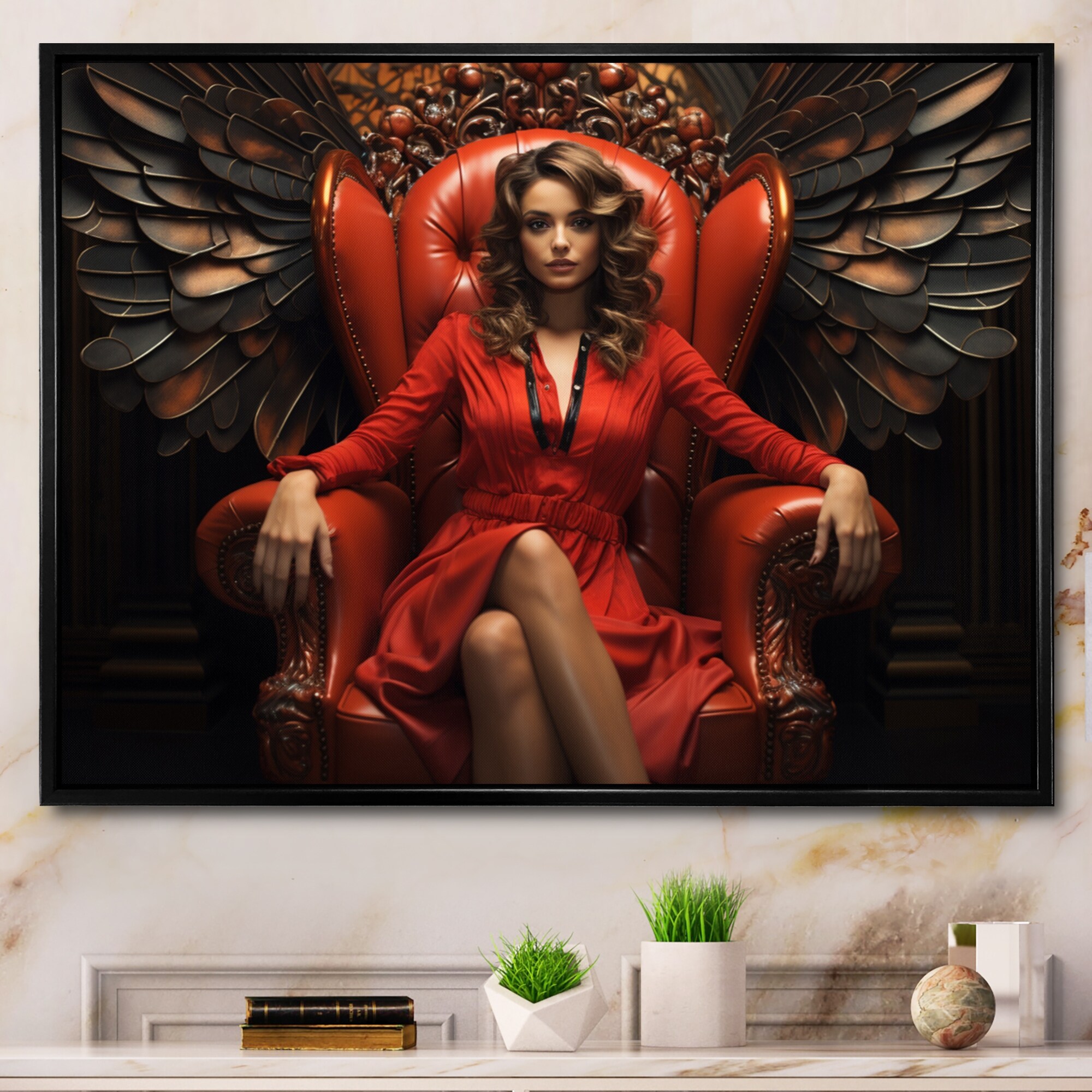 Designart "Red Queen of Angel II" Fashion Woman Framed Canvas Art Print