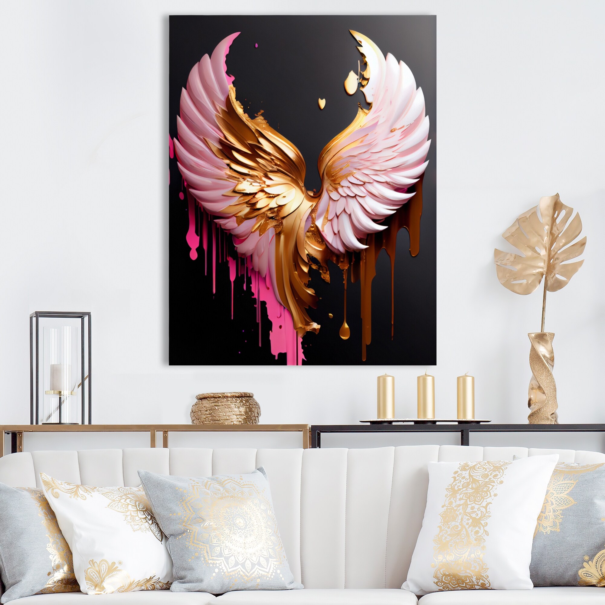 Designart 'Pink,Gold And Black Angel Wings I' Contemporary Glam Canvas Wall Art