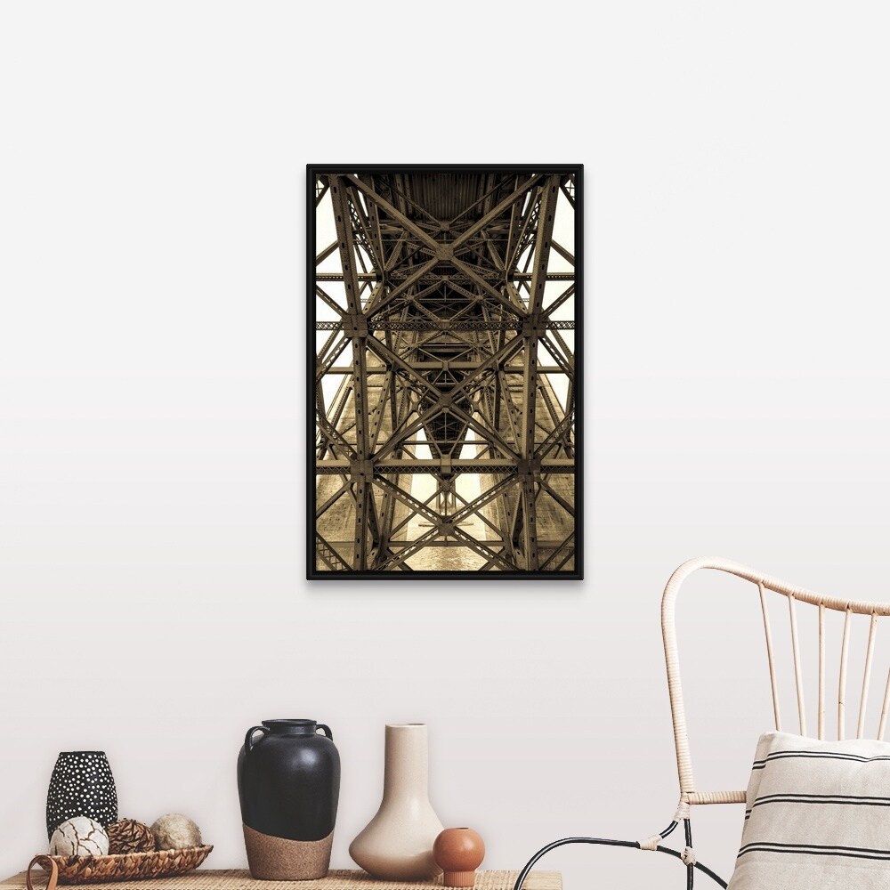 "Low angle view of detail of structure of Golden Gate Bridge, San Francisco" Black Float Frame Canvas Art