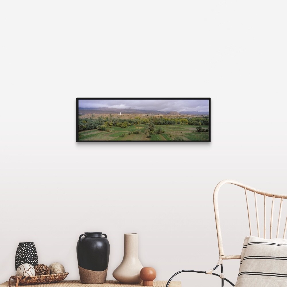 "High angle view of a city, Long Green Valley, Tinerhir, Morocco" Black Float Frame Canvas Art