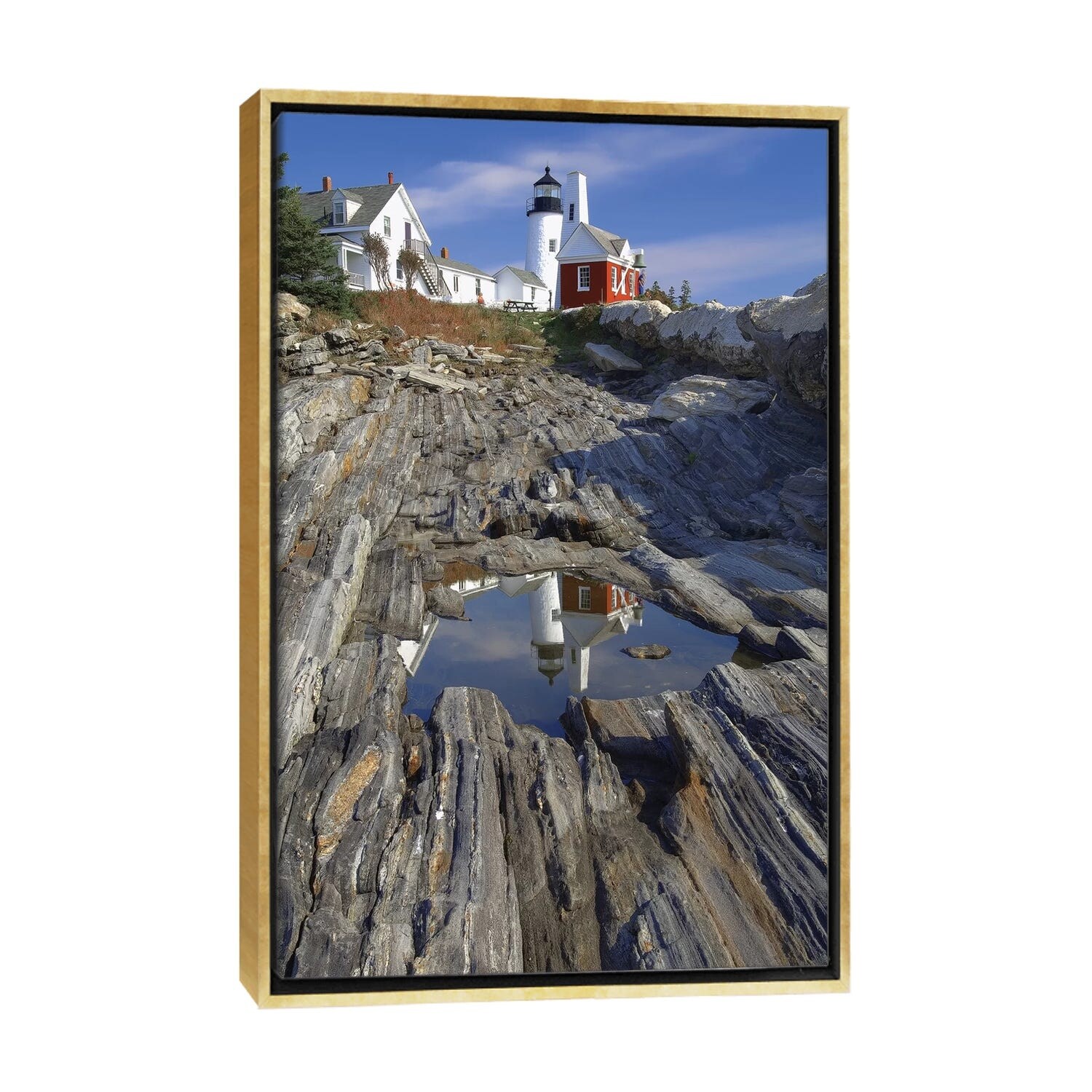 iCanvas "Low Angle View of the Pemaquid Point Lighthouse with Image Refelected in Tidal Pool" by George Oze Framed Canvas Print