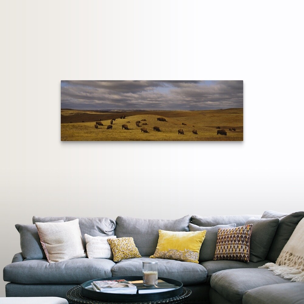"High angle view of buffaloes grazing on a landscape, North Dakota" Canvas Wall Art