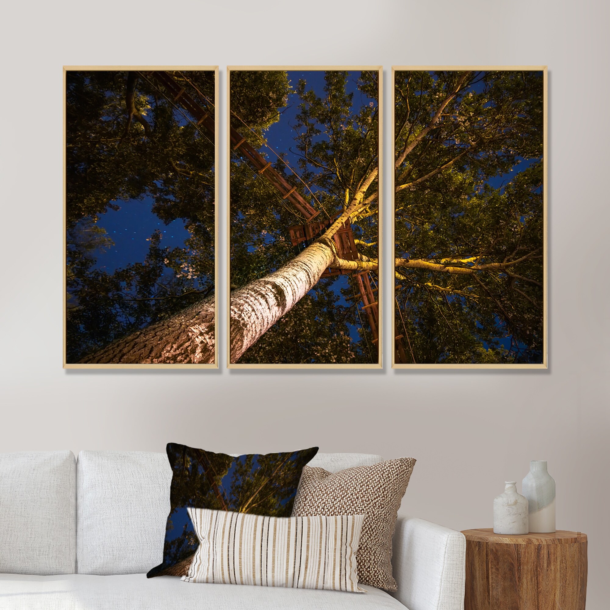 Designart "Low Angle View of the Trees With A Walkway" Traditional Framed Art Prints Set of 3 - 4 Colors of Frames