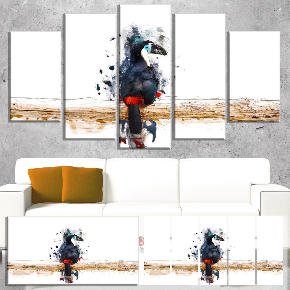 Designart "Toucan on the Branch" Large Animal Art on Canvas