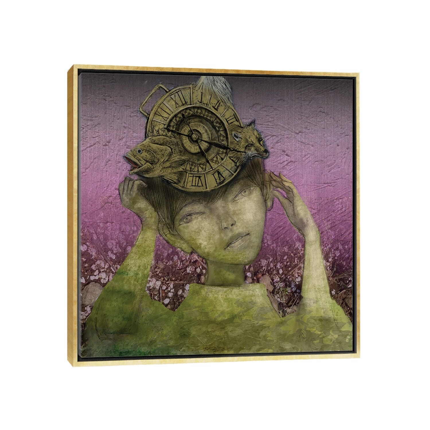 iCanvas "Olive II Animal Clock" by Hiroyuki Kurava Framed|Bl