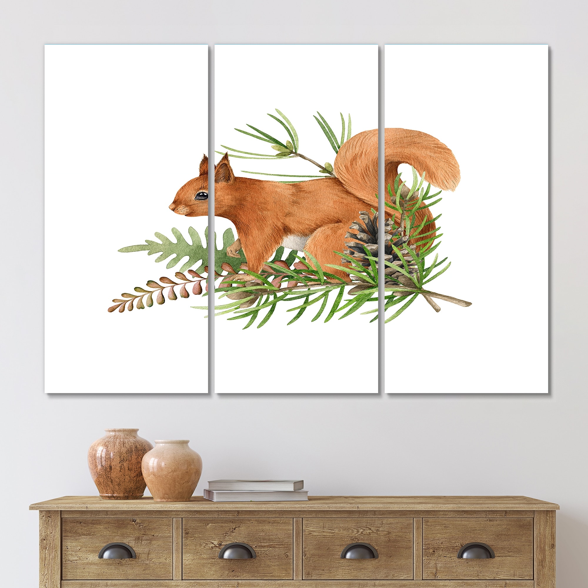Designart "Red Squirrel Animal on Pine Branch" Traditional Canvas Wall Art Print