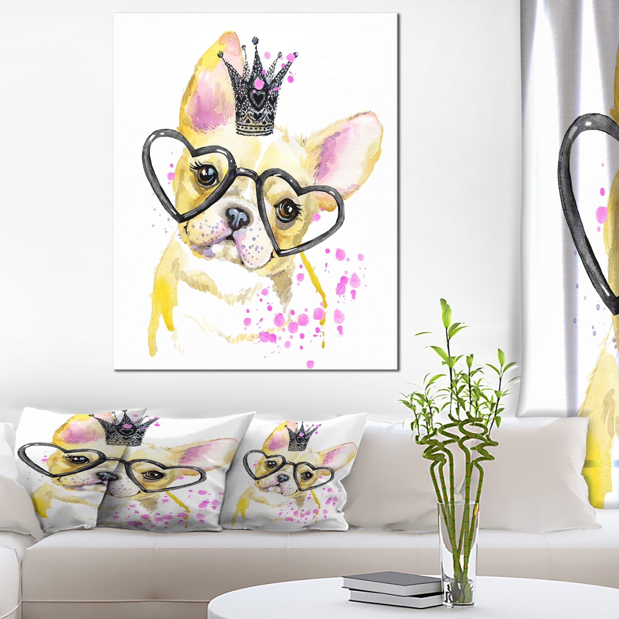Designart "Funny Dog with Large Glasses" Contemporary Animal Art Canvas