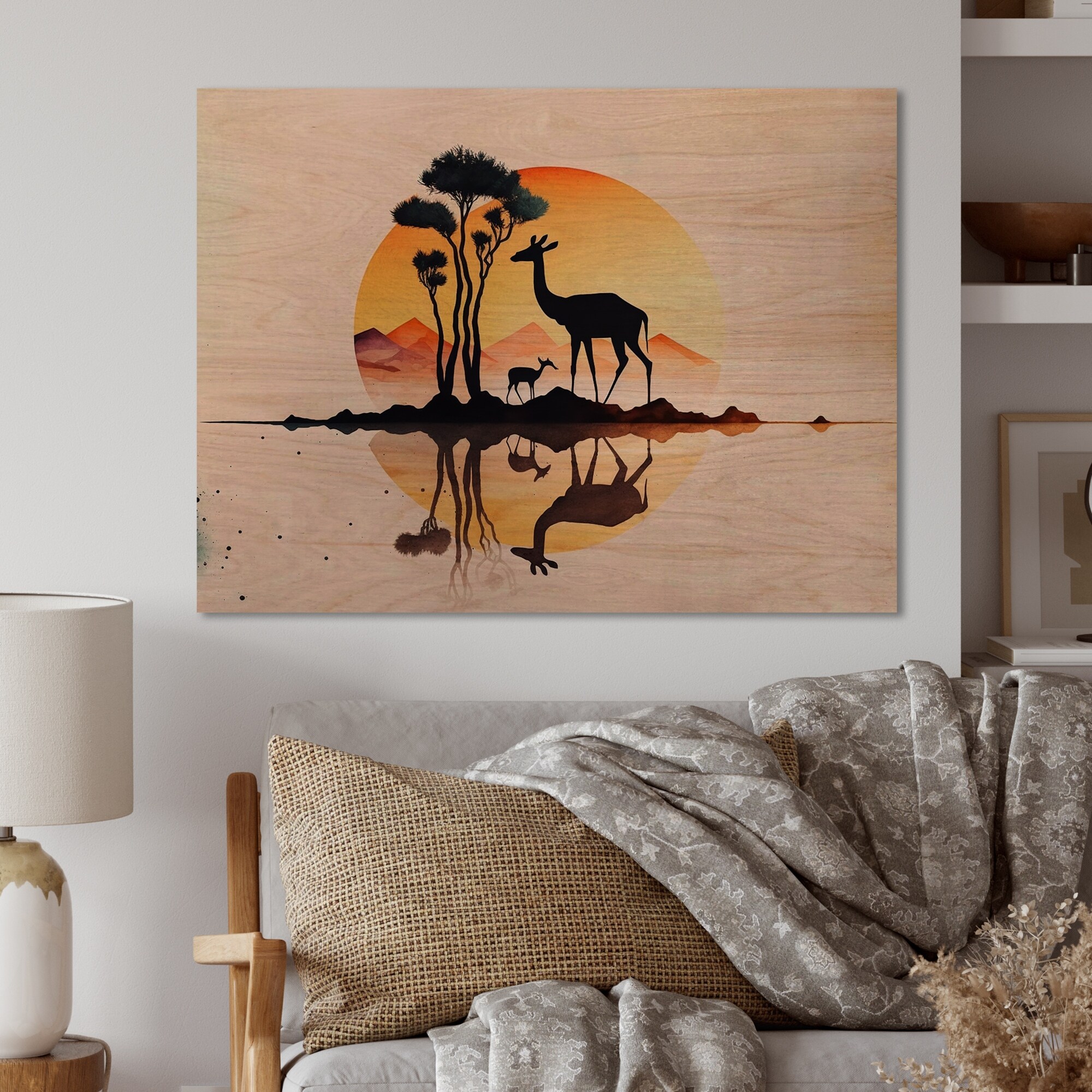Designart 'Giraffe At Sunset' Animals Giraffe Wood Wall Art - Natural Pine Wood