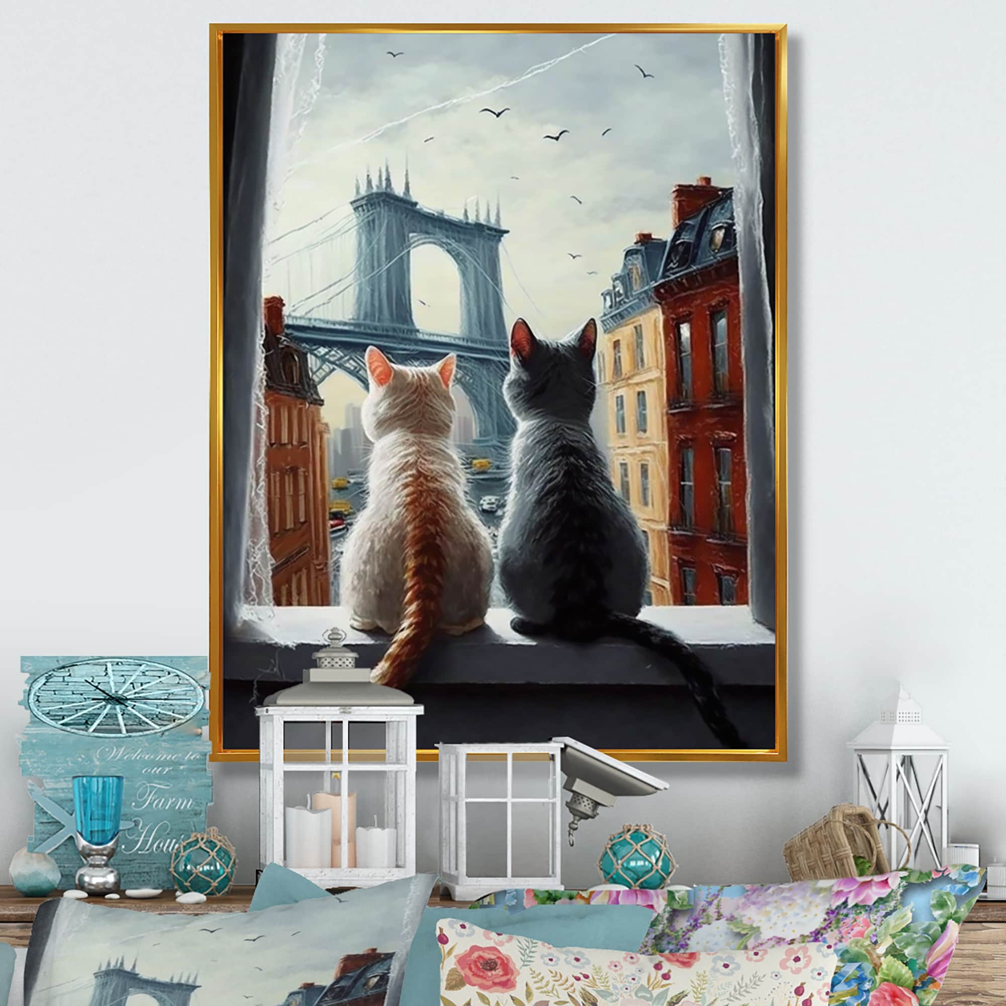 Designart "Two Cats in the City I" Animals Framed Canvas Art Print