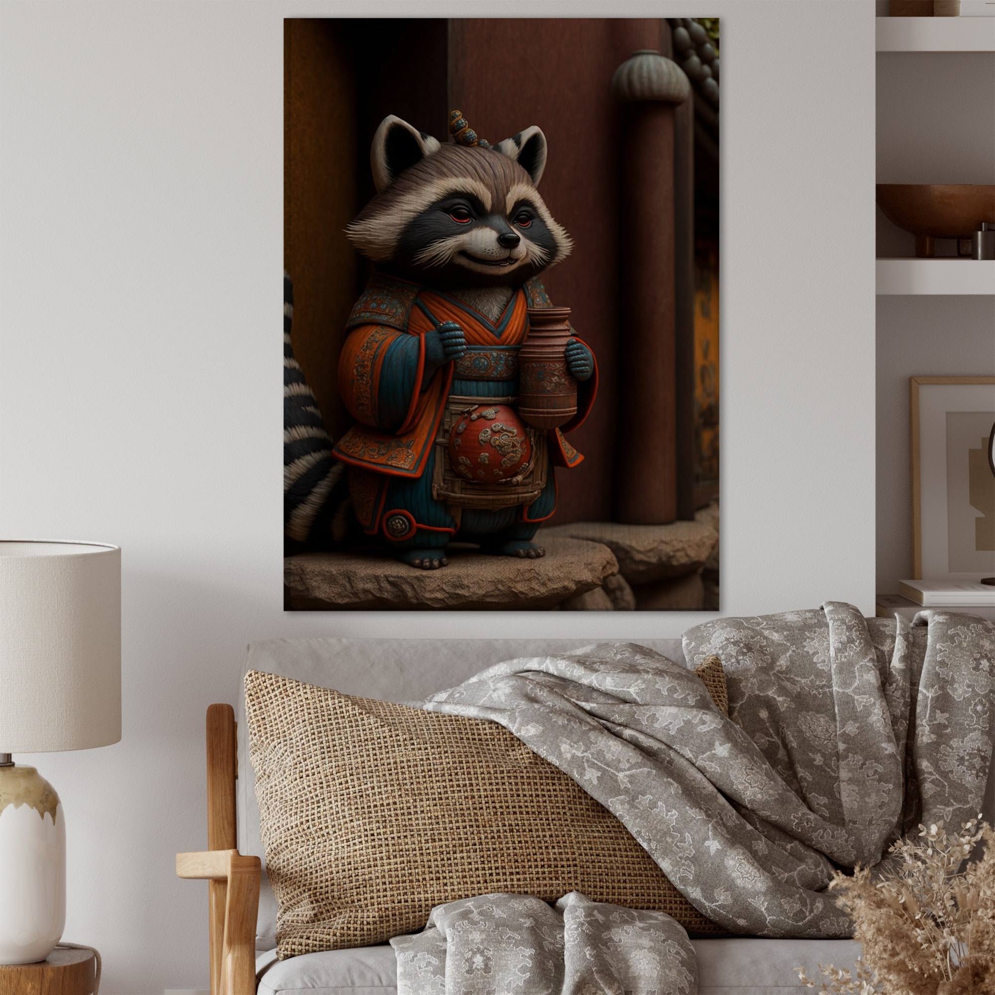 Designart 'Happy Terracotta Tanuki I' Animals Raccoon Wood Wall Art - Natural Pine Wood