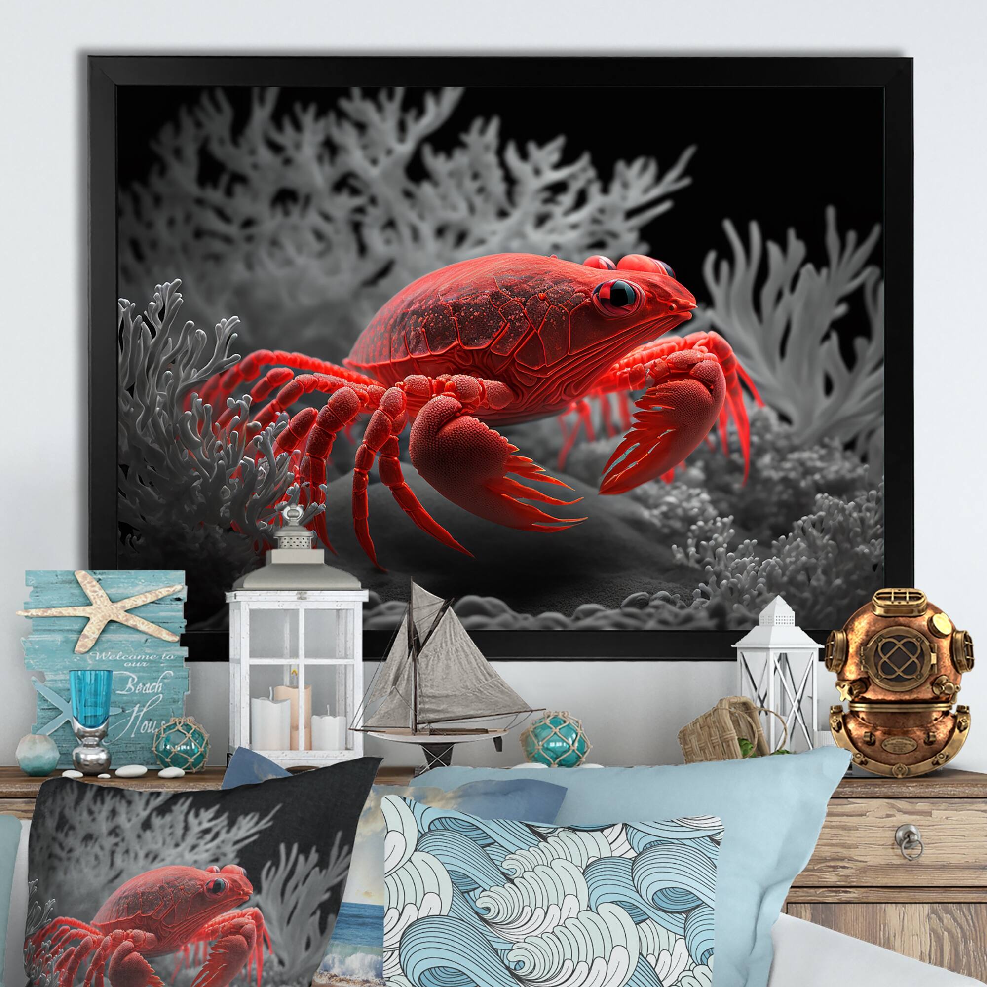 Designart "Red Deepsea Crab in Red And Black I" Animal Fish Framed Art Print