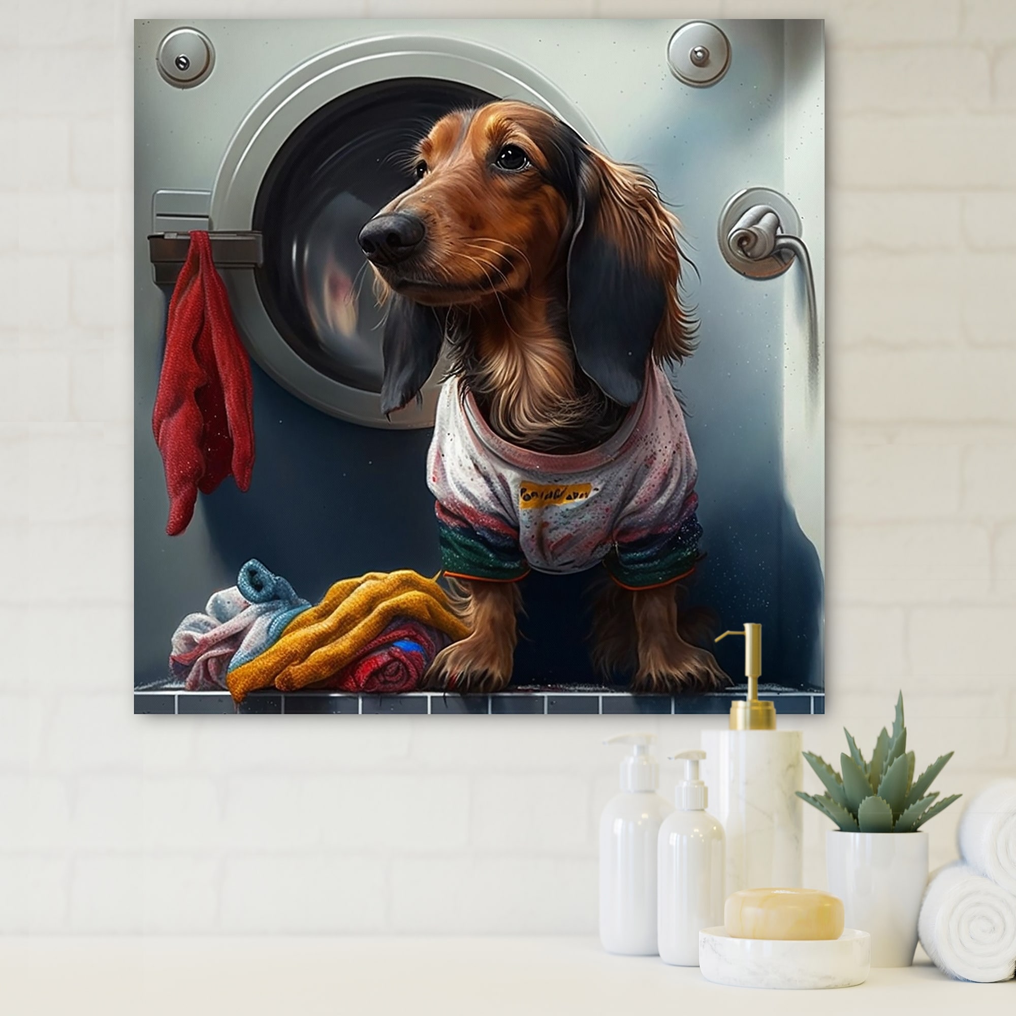 Designart 'Dachshund Doing the Laundry IV' Animals Canvas Wall Art