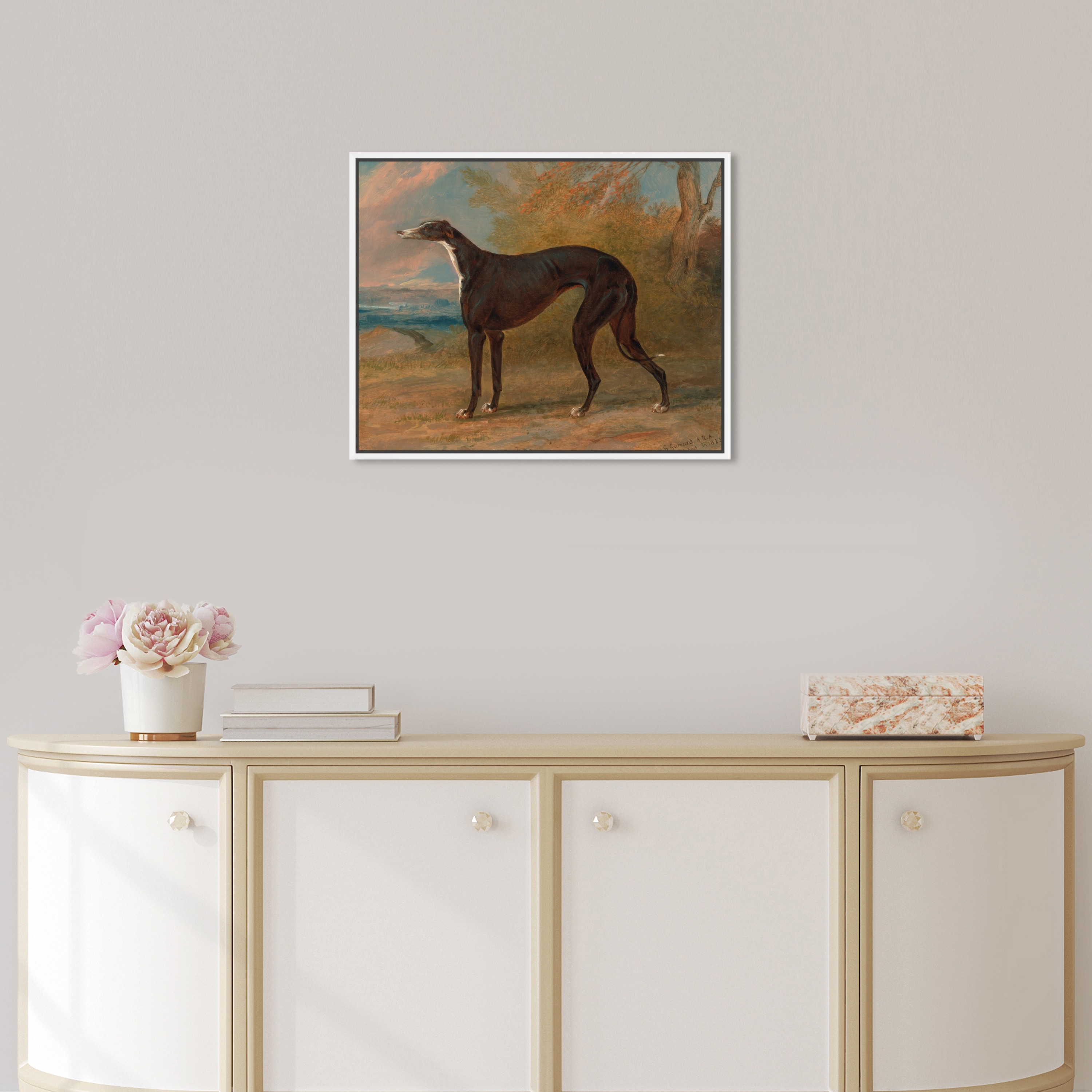 Oliver Gal 'George Garrard - Black and White Greyhound ' Animals Black Wall Art Canvas Print