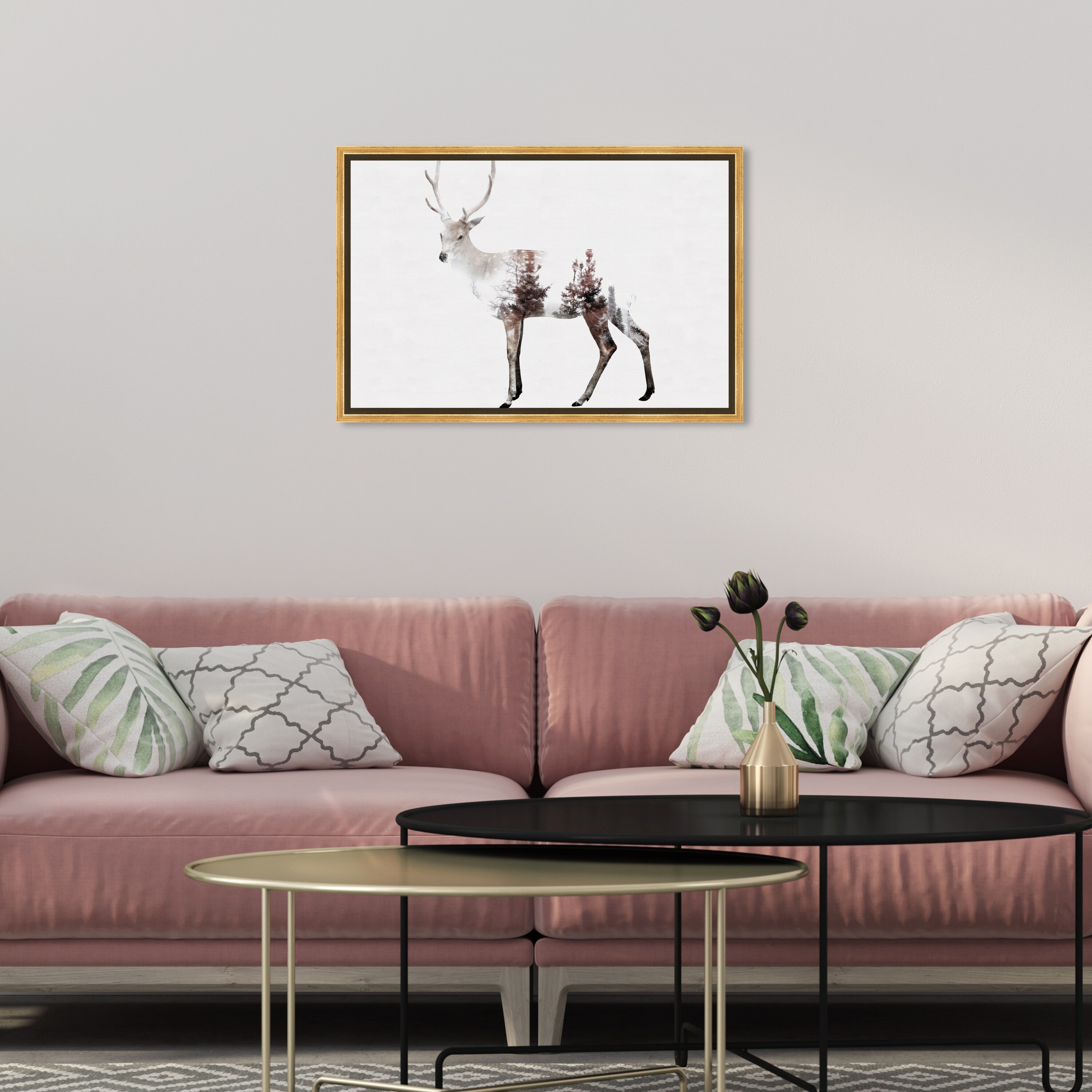 Oliver Gal 'The Deer and the Forest' Animals Wall Art Framed Canvas Print Zoo and Wild Animals - White, Brown