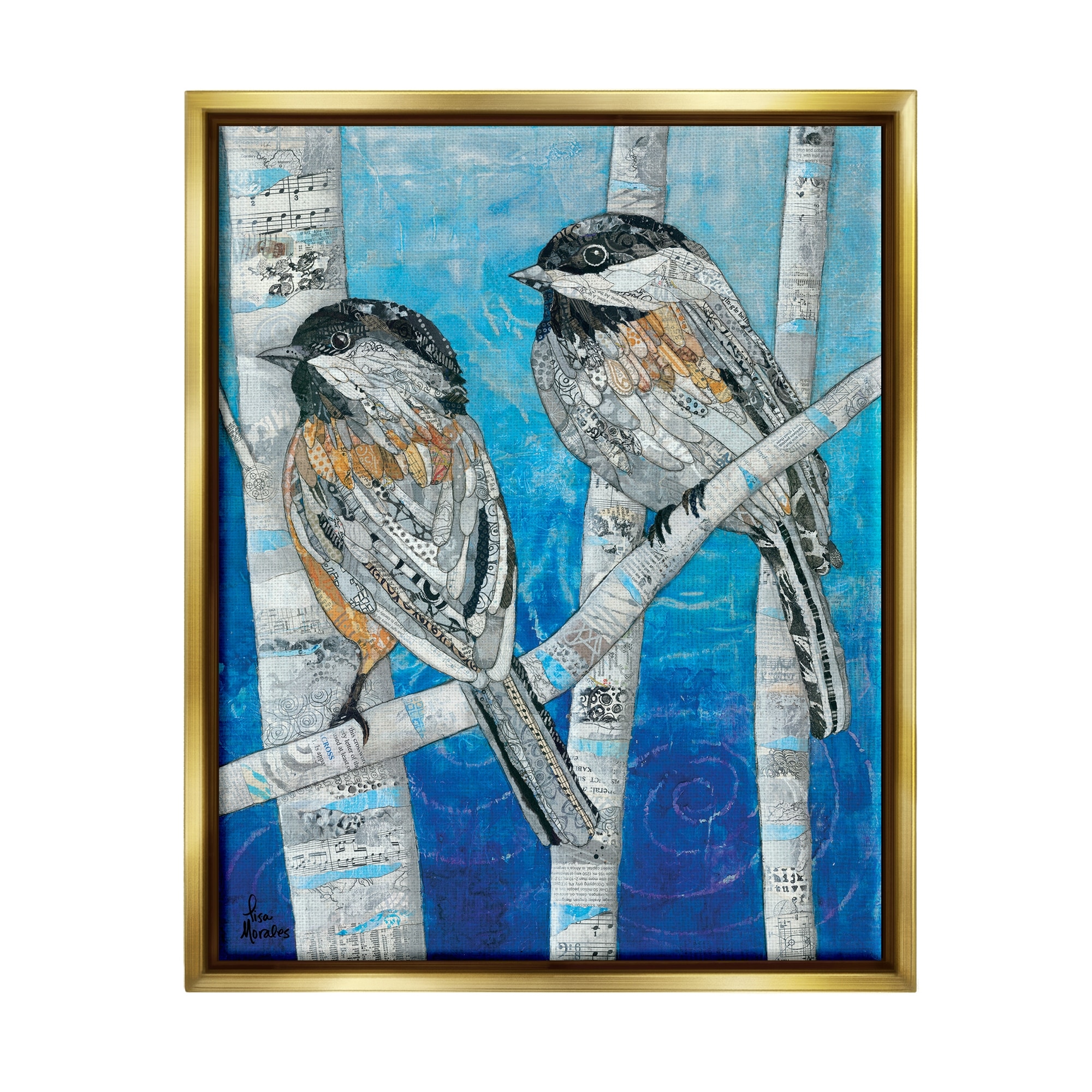 Stupell Industries Chickadees Perched Layered Ephemera Animal Birds Collage Floater Frame, Design by Lisa Morales