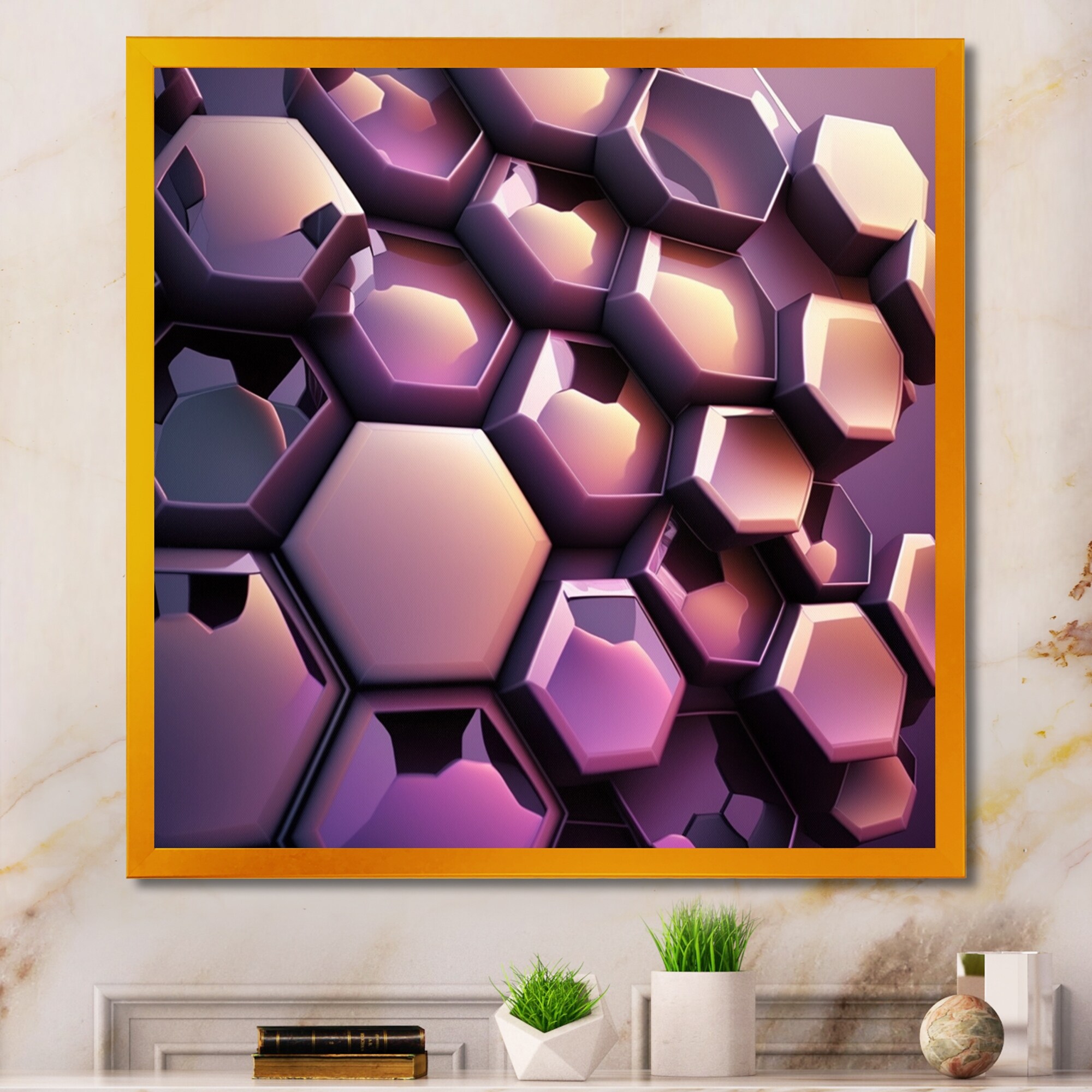 Designart "Abstract Geomtric Purple II" Animals Framed Art Print