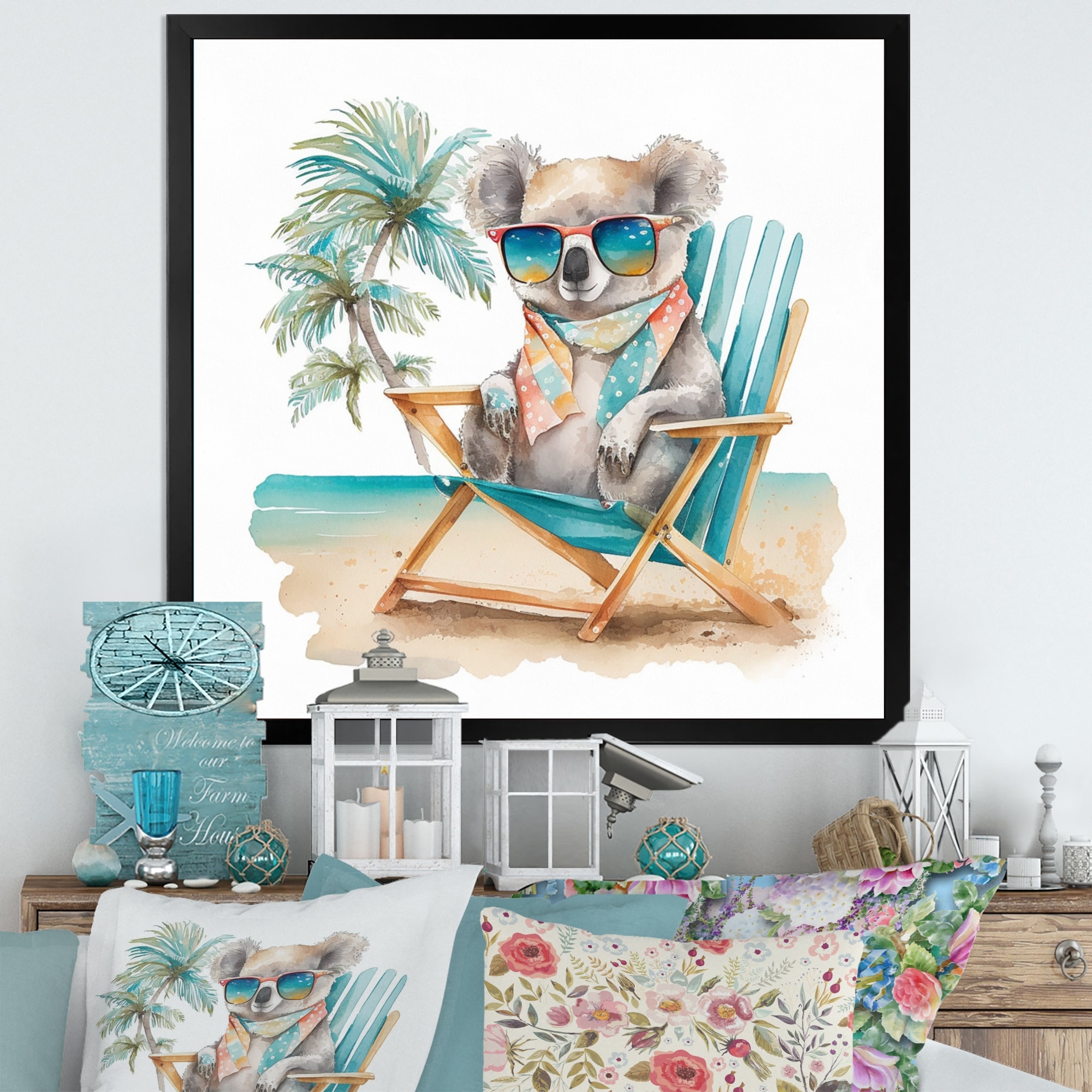 Designart "Koala With Sunglasses on the Beach" Animals Framed Art Print