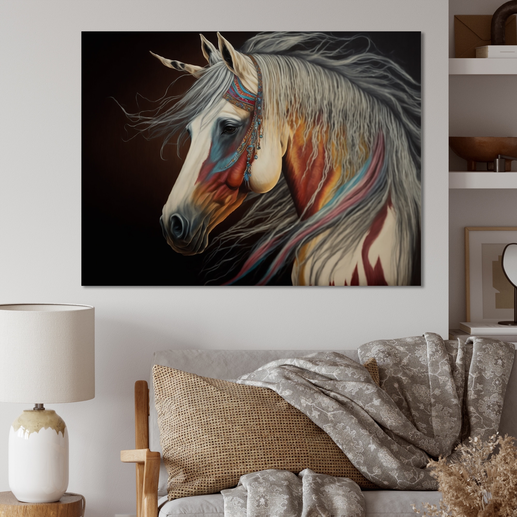 Designart 'Indian Horse With Colorful Mane V' Animals Horse Indian Metal Wall Art