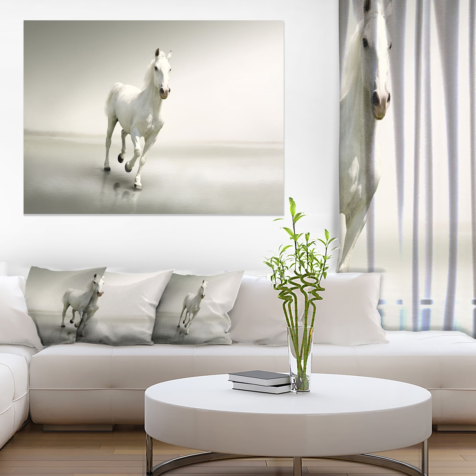 Designart "Beautiful White Horse Running" Animal Canvas Art Print